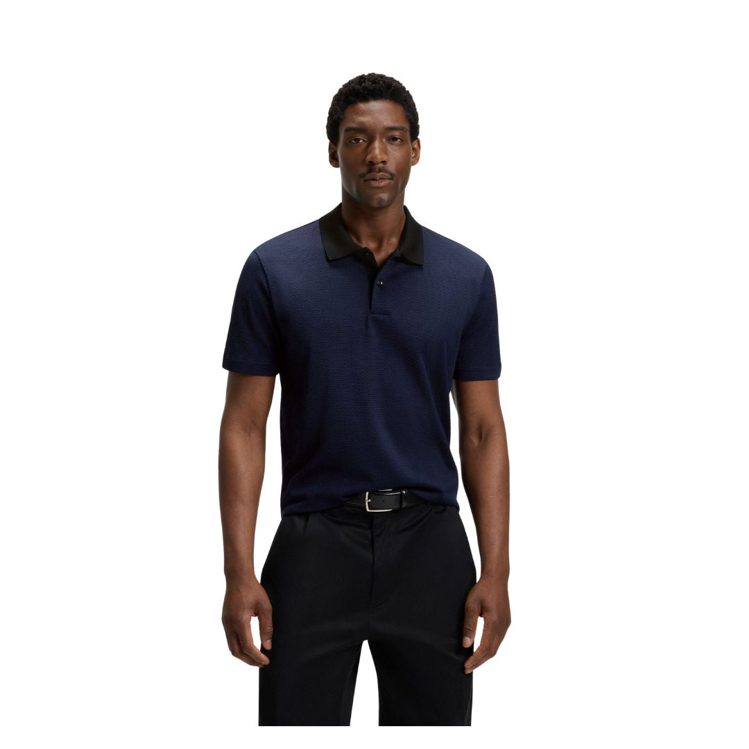 The BOSS C-Parley 212 Geometric Jacquard Polo Shirt offers a sophisticated blend of style and comfort. Crafted from 100% cotton, this men's short sleeve polo shirt features an extra-soft feel and a straight fit for a clean silhouette. The subtle geometric jacquard pattern and discreet logo make it an excellent choice for both smart and casual occasions, delivering versatile elegance with every wear.
