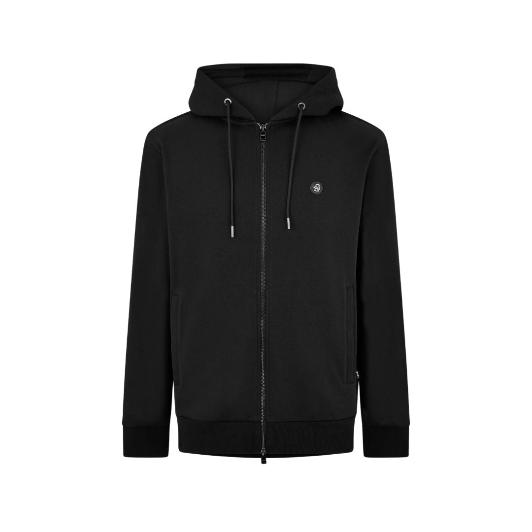 The C-Spence Blend Hoodie in black combines understated design with versatile style. This Black BOSS hoodie features a discrete embroidered Boss logo on the left chest and adjustable drawstrings for a tailored hood fit, it effortlessly bridges smart and casual wear. Perfect for many different occasions making it a need for any wardrobe