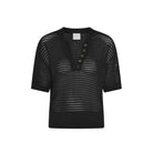 Crafted from lightweight cotton mesh knit, this top is designed in a boxy, oversized silhouette that drapes effortlessly from the frame. A deep V-neckline and short sleeves with dropped shoulders enhance its relaxed appeal, making it easy to pair with everything from active sets to everyday staples.