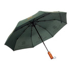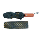 Brighten up dreary days with our sleek telescopic umbrella. Fashioned from 100% waterproof racing green fabric, each panel boasts our distinctive gold metallic branding. Designed to fit perfectly in your handbag, this umbrella collapses effortlessly into its stylish monogram-printed sleeve, ensuring you stay both fashionable and prepared for unexpected showers.