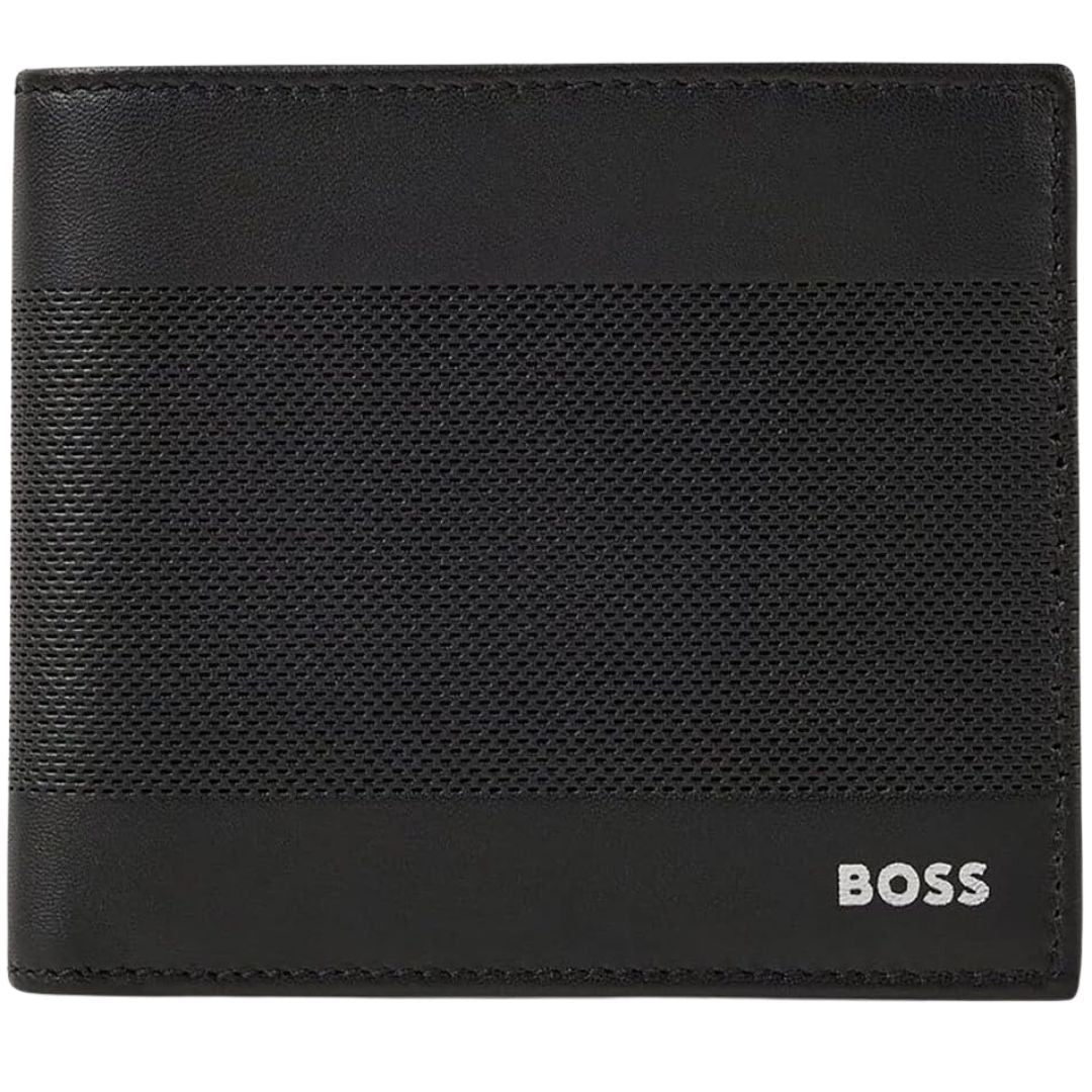 This men's BOSS reversible 40mm leather belt offers versatile styling with one side in smooth black leather and the other in grained dark brown. It’s finished with a sleek brushed black buckle for a modern, refined look.