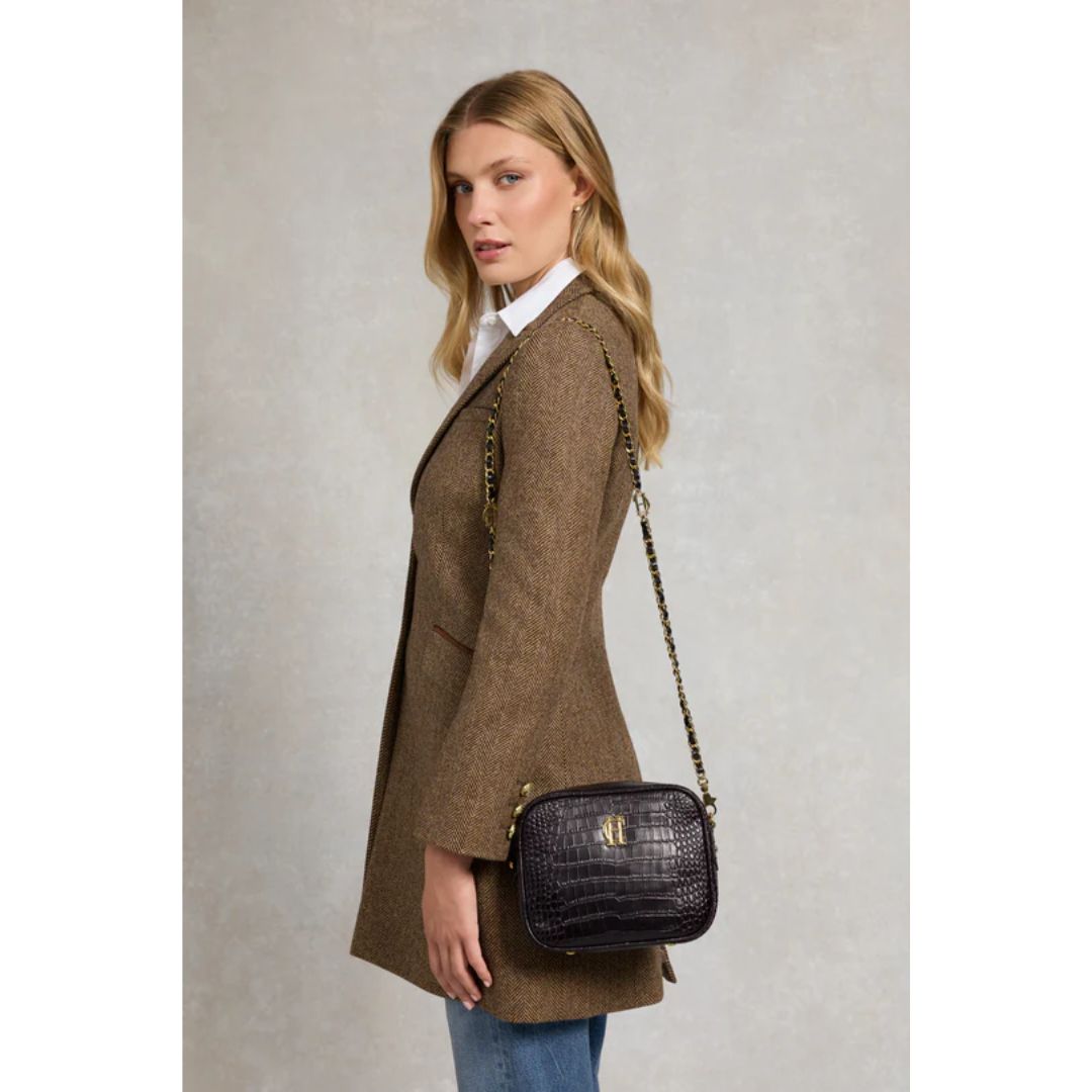 Crafted from lightly tumbled chocolate cow leather, the Soho Camera Bag offers a refined blend of timeless elegance and everyday practicality. Its compact silhouette is enhanced by vintage-inspired warm gold hardware, adding a sophisticated touch. Designed for versatility, this women's bag includes a detachable leather-wrapped chain strap that allows you to wear it crossbody or carry it as a sleek clutch. This elegant accessory is the perfect statement piece to elevate any ensemble.