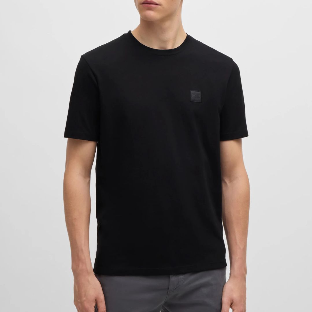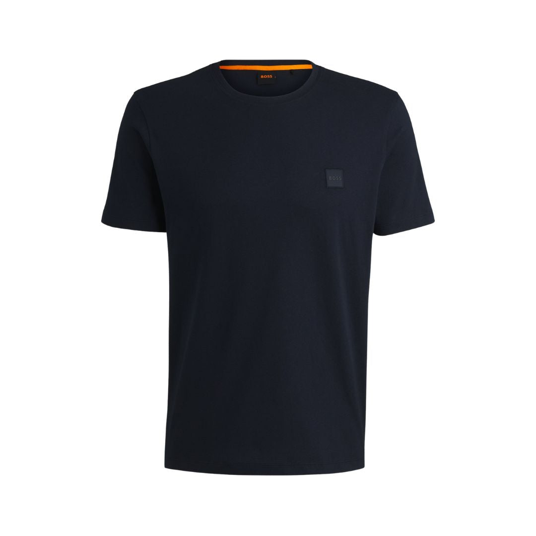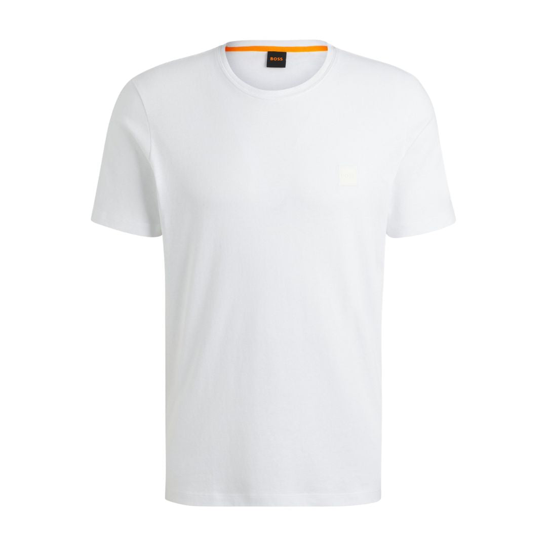 Elevate your casual wardrobe with the luxurious sophistication of the Tales T-shirt by BOSS. Meticulously crafted from premium cotton jersey, this T-shirt boasts a regular fit and features a ribbed round neckline, short sleeves, and tonal stitching throughout. The straight hemline and elasticated trims ensure ultimate comfort all day long.