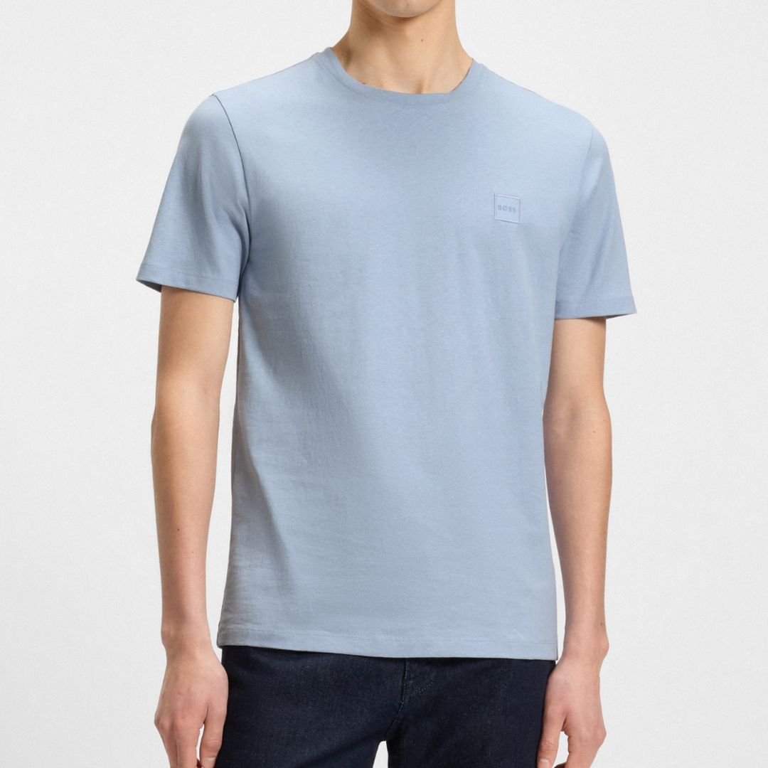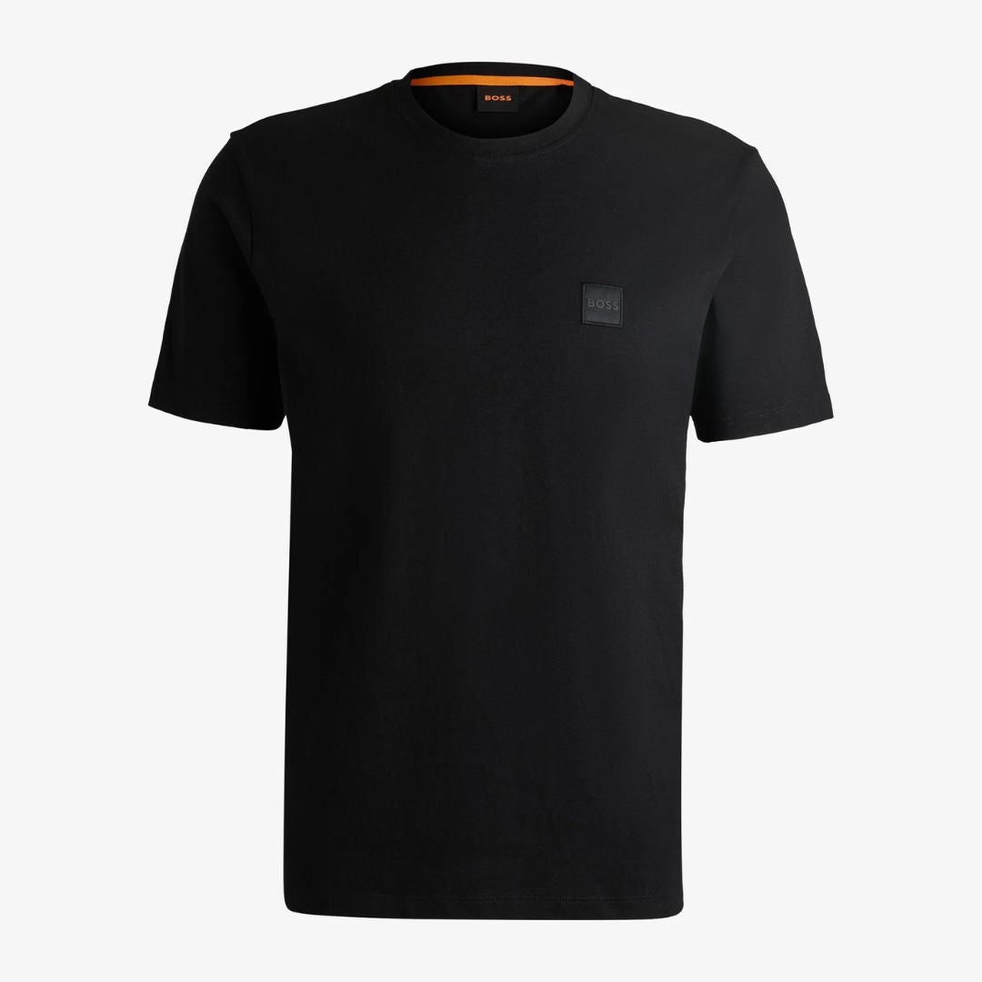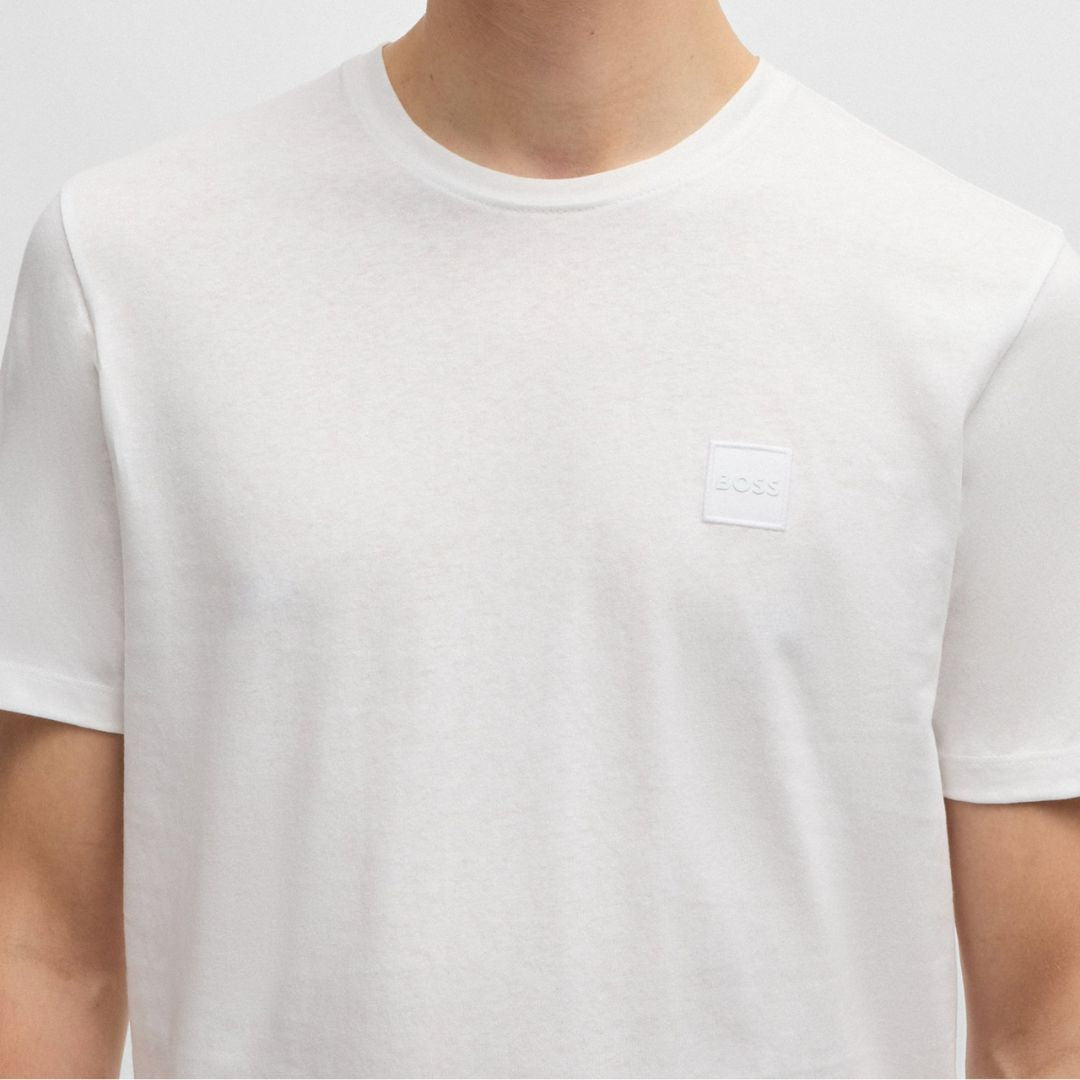 Elevate your casual wardrobe with the luxurious sophistication of the Tales T-shirt by BOSS. Meticulously crafted from premium cotton jersey, this T-shirt boasts a regular fit and features a ribbed round neckline, short sleeves, and tonal stitching throughout. The straight hemline and elasticated trims ensure ultimate comfort all day long.