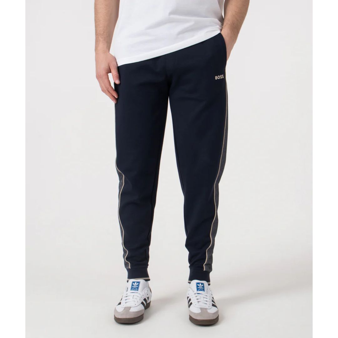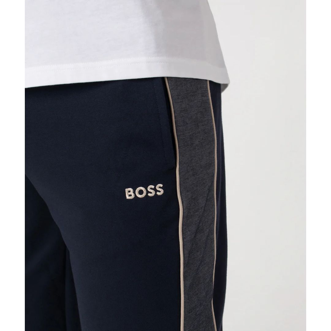 Elevate your casual wardrobe with these refined Boss Tracksuit Jogger Pants. Featuring an elasticated waistband and regular fit for superior comfort, these distinguished men's joggers showcase the iconic Boss logo on the leg. The sophisticated side stripe with contrast piping adds a touch of distinction to this essential leisurewear piece, perfect for the discerning gentleman who values both style and comfort.