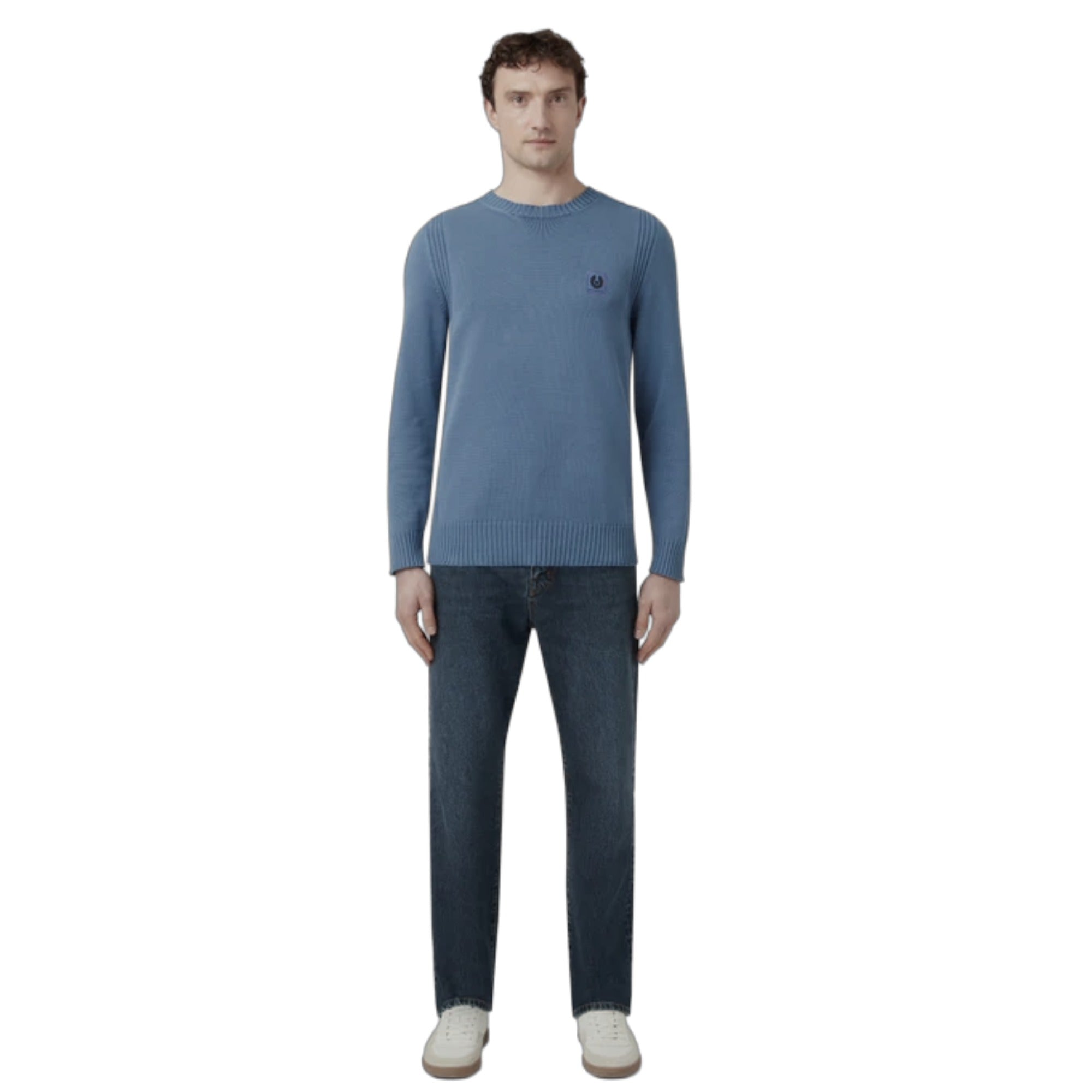 This refined knit sweater showcases a tonal embroidered Belstaff phoenix patch at the chest, adding understated heritage appeal. Crafted from luxurious five-gauge Egyptian cotton that's garment-dyed for a distinctive, lived-in aesthetic, it delivers both comfort and character. Engineered rib detailing at the sleeve and armhole ensures a contemporary silhouette, while the ribbed collar, cuffs, and hem provide a polished finish. An elevated essential for the discerning wardrobe.