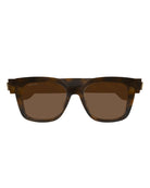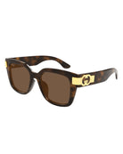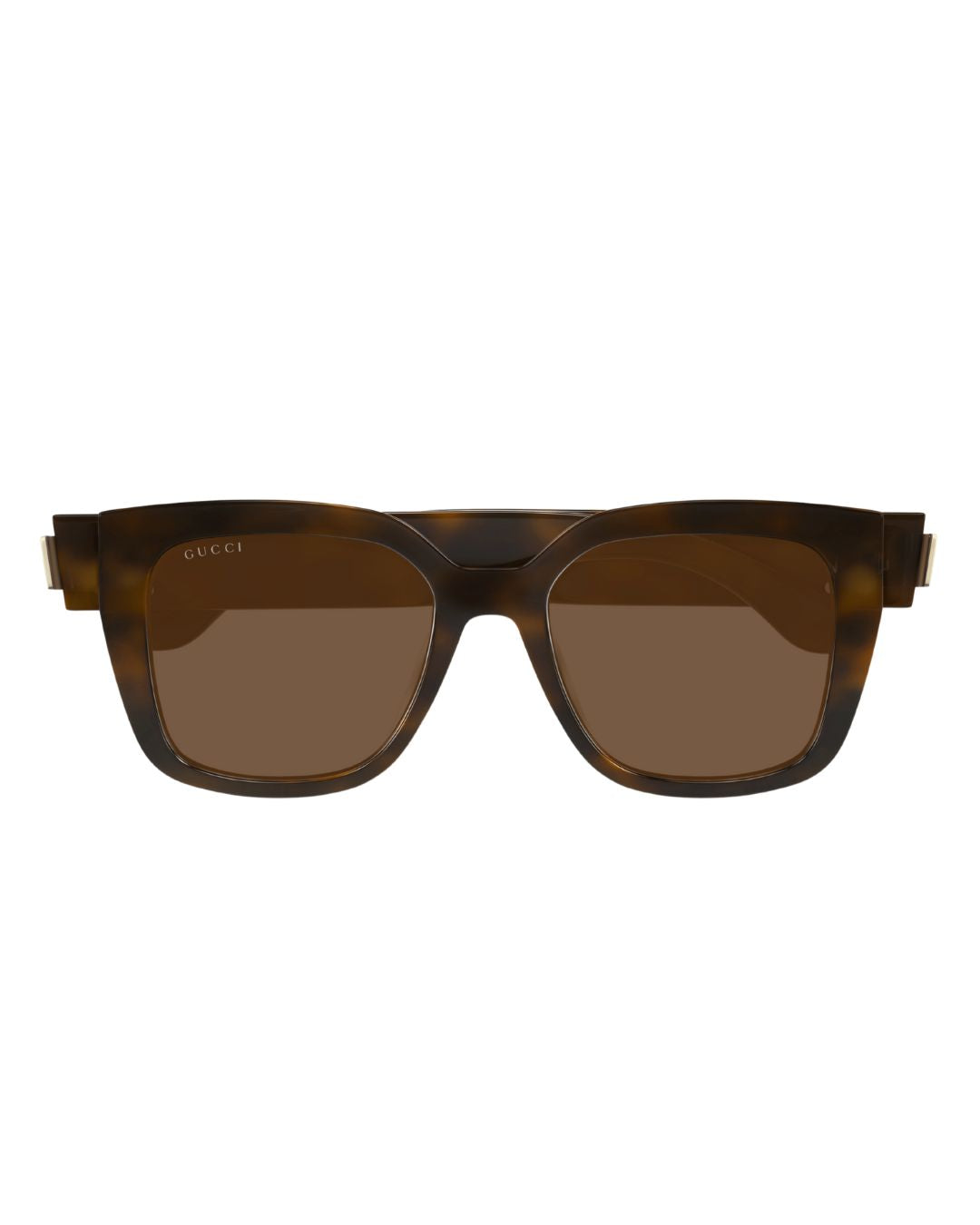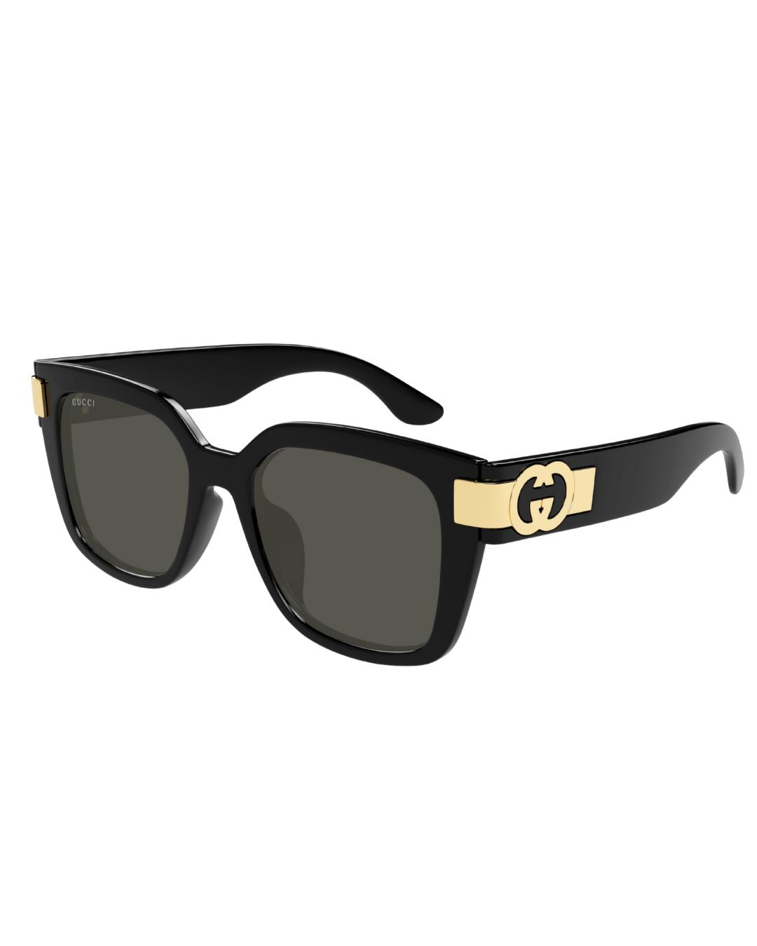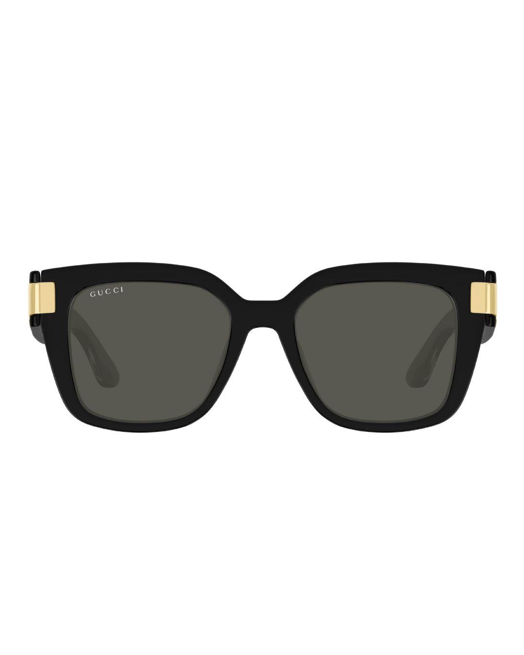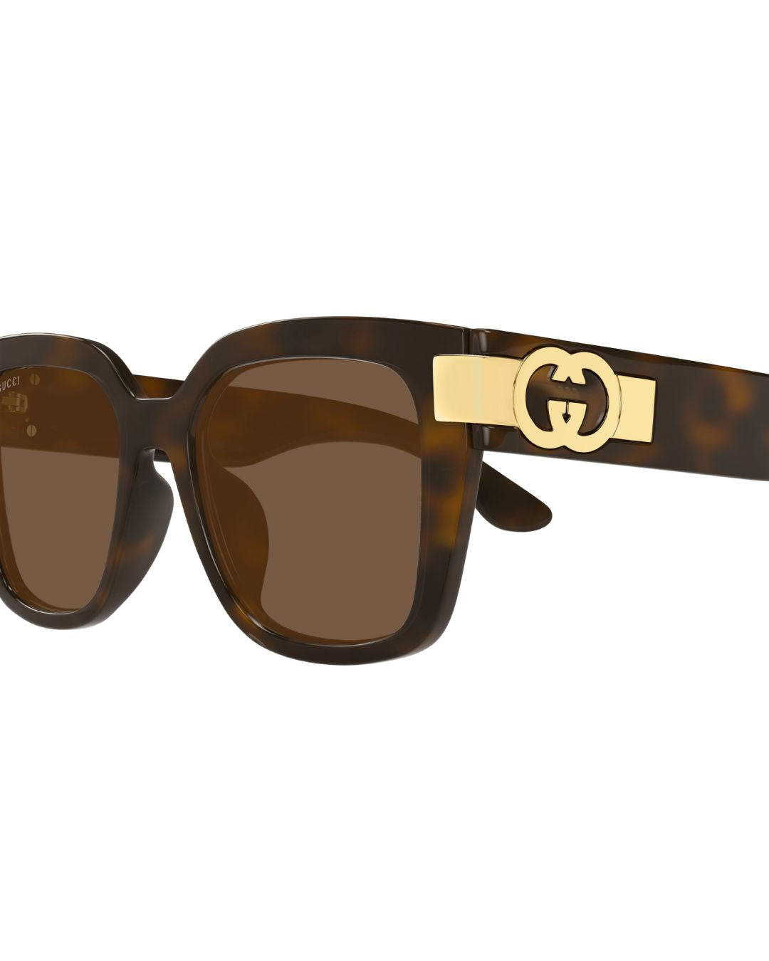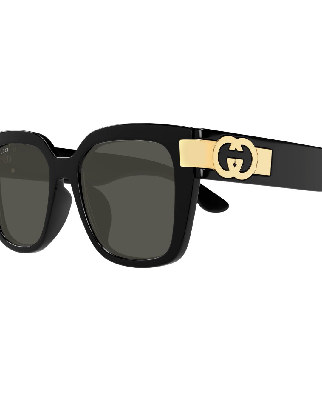 Bold oversized cat-eye frames featuring the iconic flat metal GG Britt detail on the temples. A sleek metal insert, visible from both the front and sides, showcases the Interlocking GG logo. Finished in a matte metallic color palette for a modern, sophisticated look.