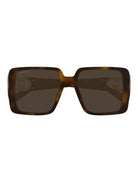 Inspired by a '90s aesthetic, these oversized square sunglasses feature bold styling and a distinctive cut-out GG Britt logo at the hinge. The temples are defined by this signature detail, adding a modern twist to a retro-inspired design.