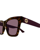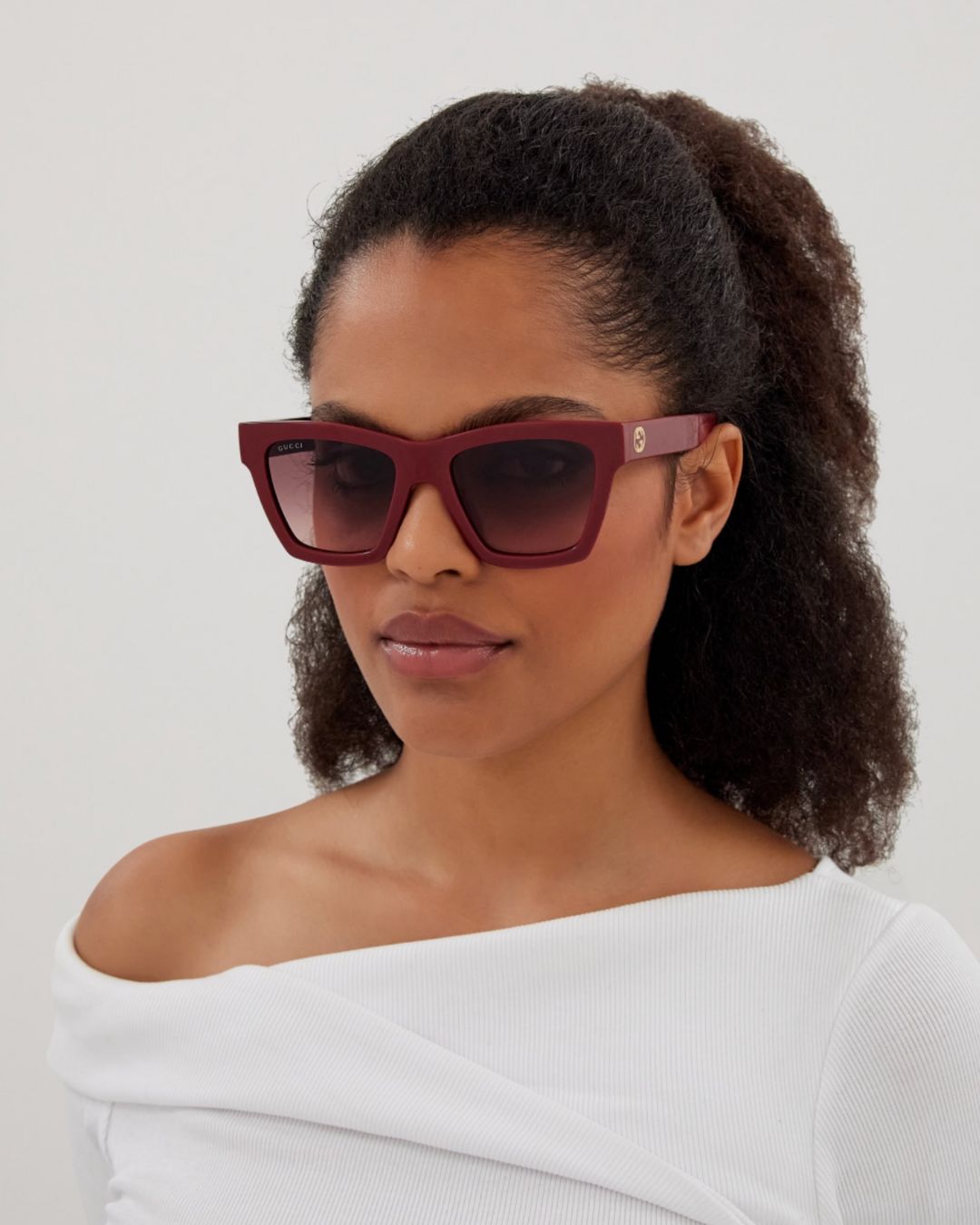 Featuring a squared shape, these sunglasses are accented with interlocked GG detailing on the temples. The design is elevated by a stylish, yet wearable color palette with at least two distinctive color combinations.