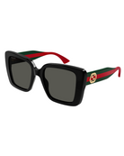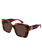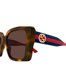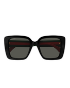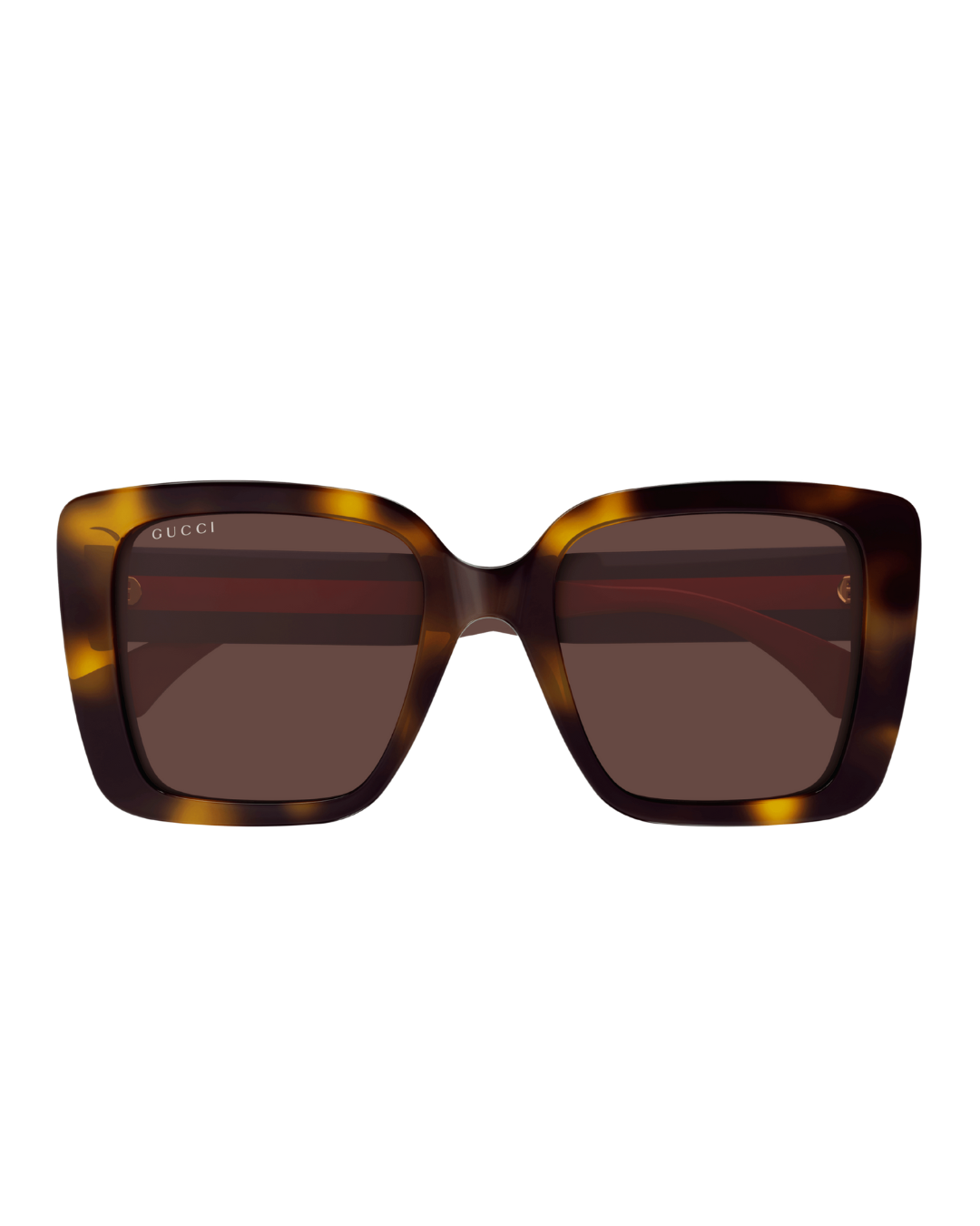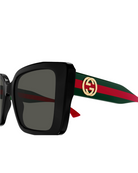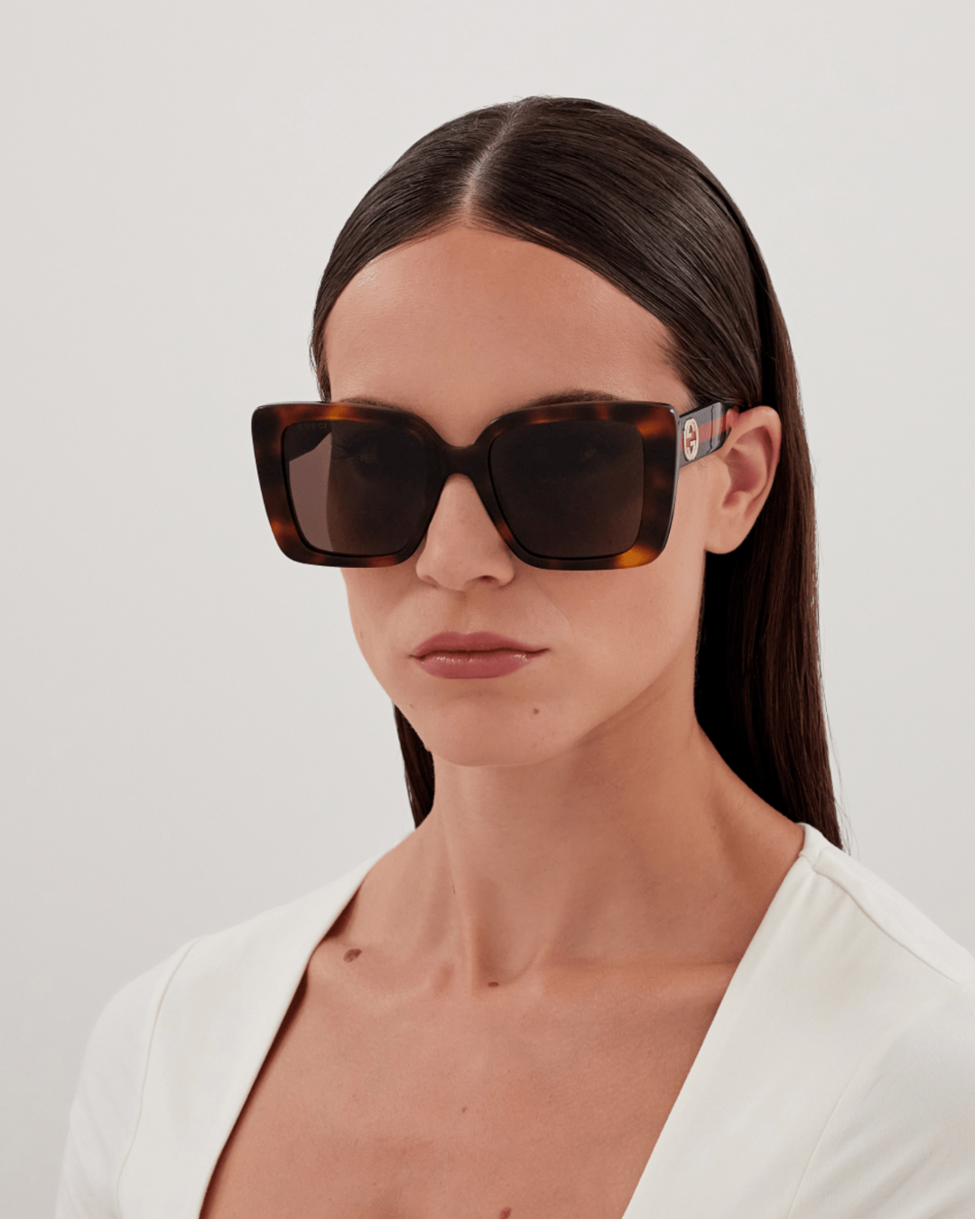 Oversized butterfly-shaped sunglasses with a versatile, commercial design. Featuring the iconic Web detail on medium temples and Sabato De Sarno's bold new lettering logo, prominently displayed in gold or silver for striking side-profile appeal.
