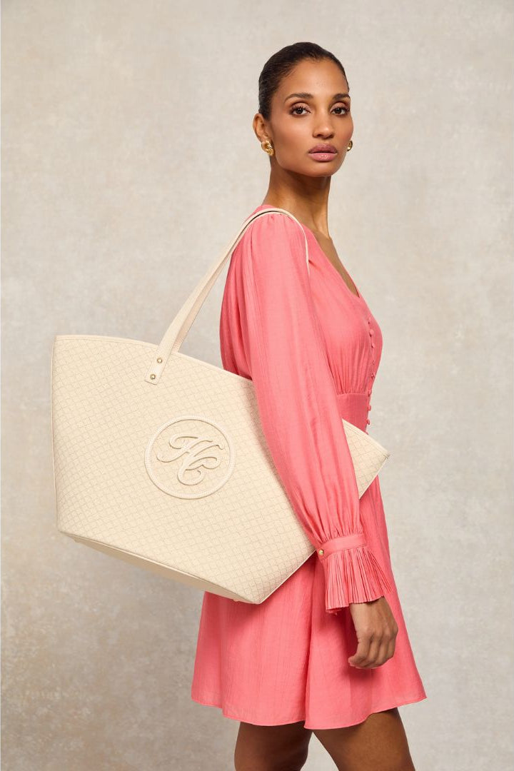 This effortlessly chic beach cover-up from BOSS Womenswear is styled in the brand’s signature colours, with a breezy V-neckline and relaxed fit—perfect for layering over swimwear on sunny days. A subtle logo charm at the back neck adds a refined touch of branding. Crafted from cellulose fibres derived from natural wood, this piece supports responsible forestry practices through collaboration with trusted environmental partners.