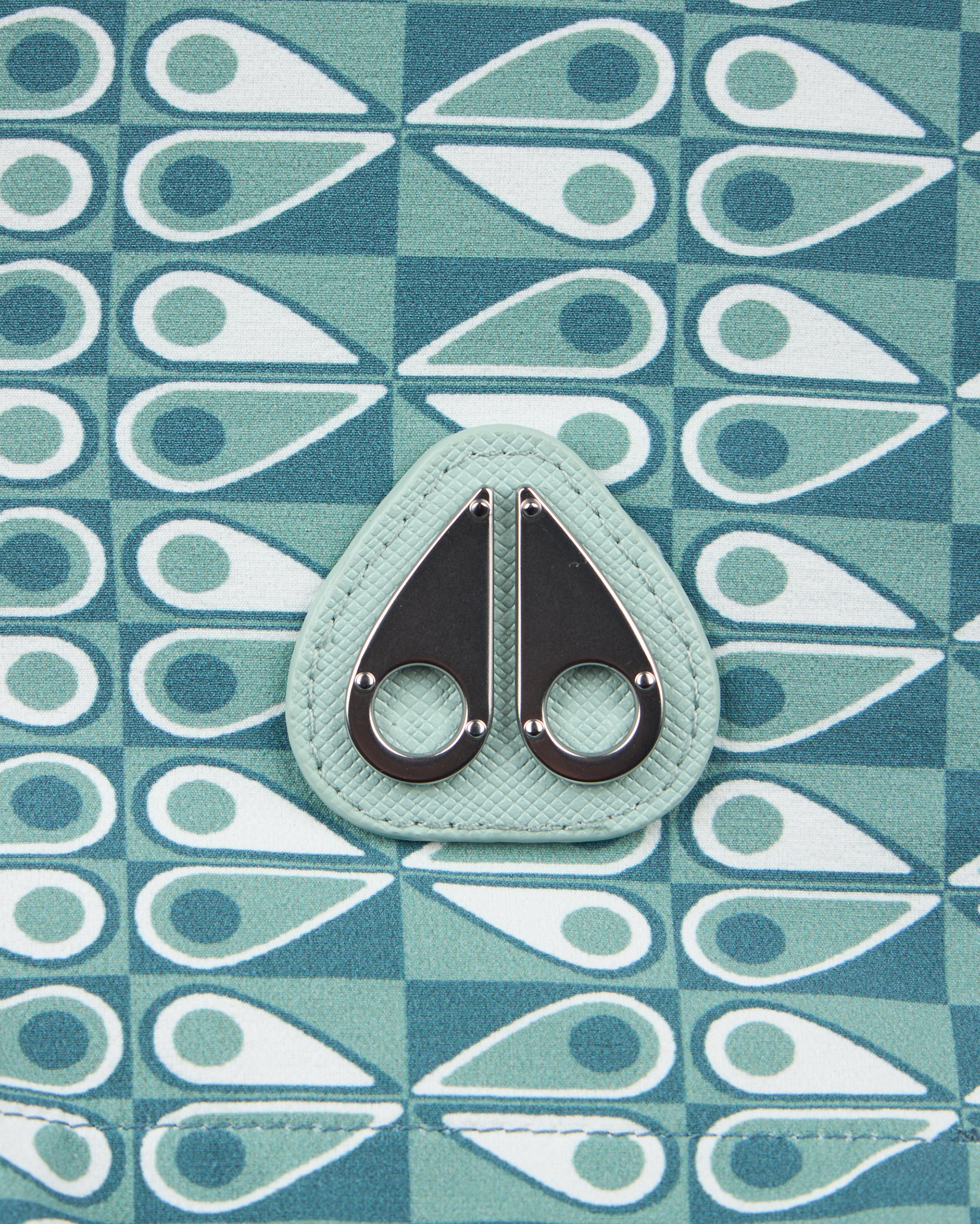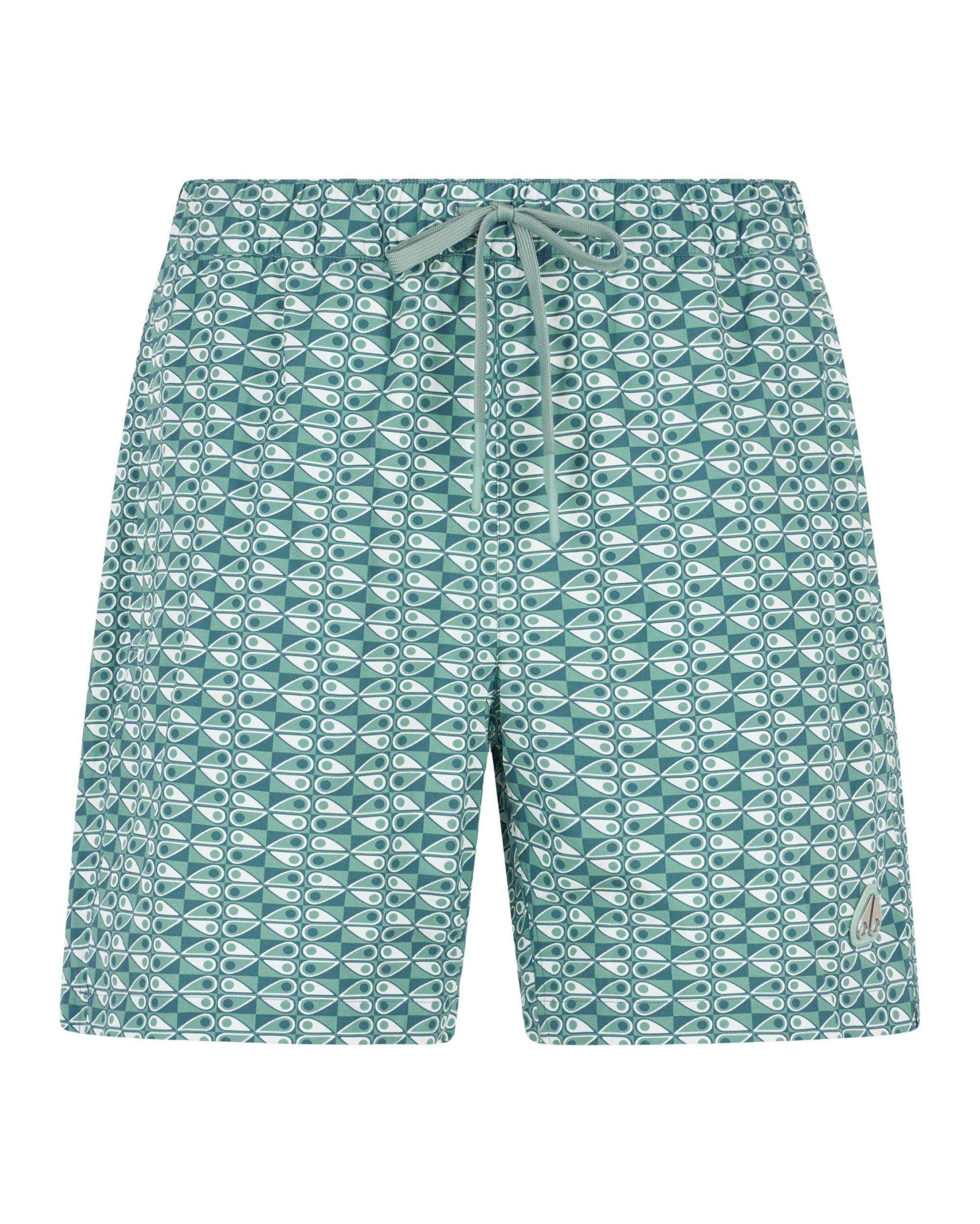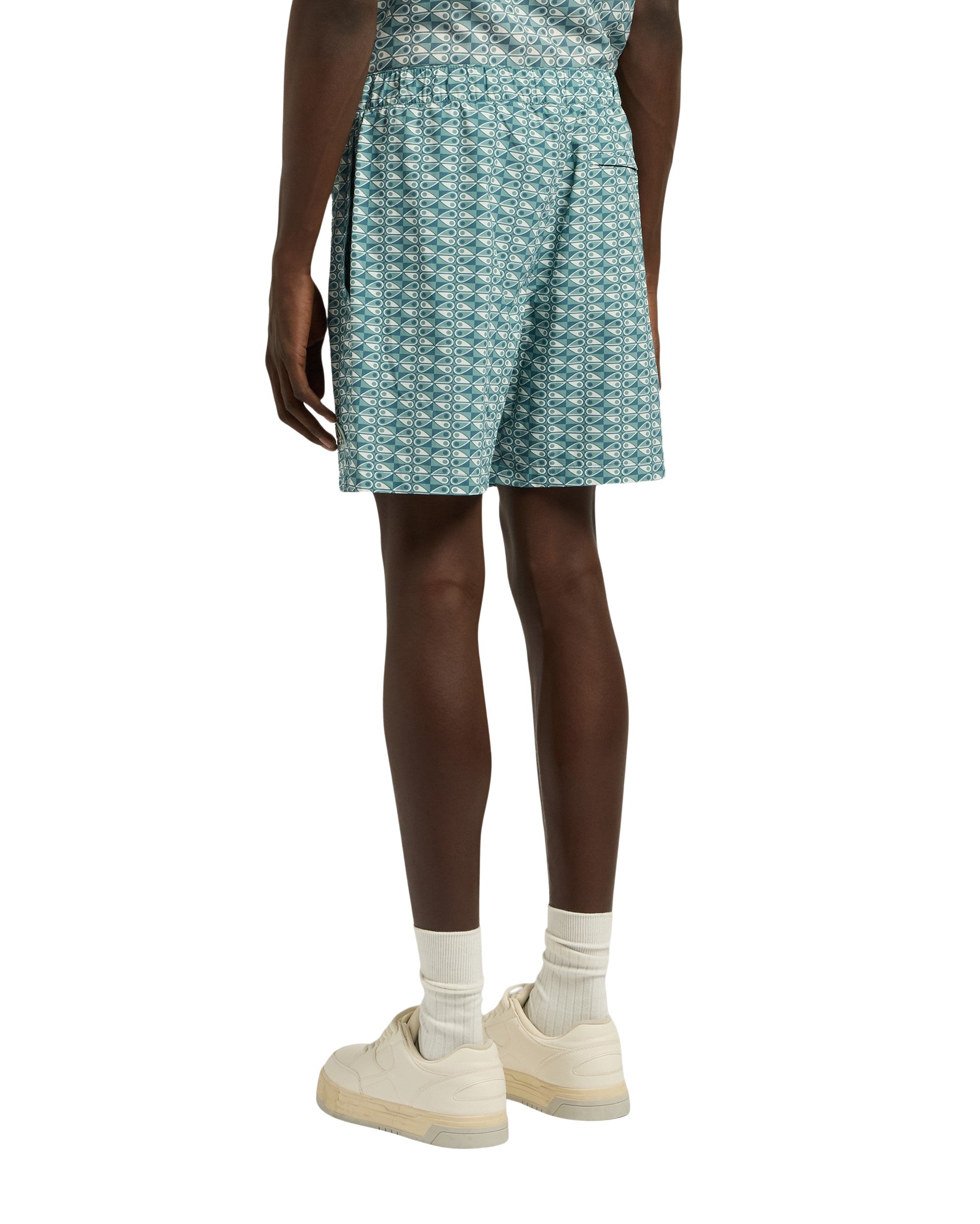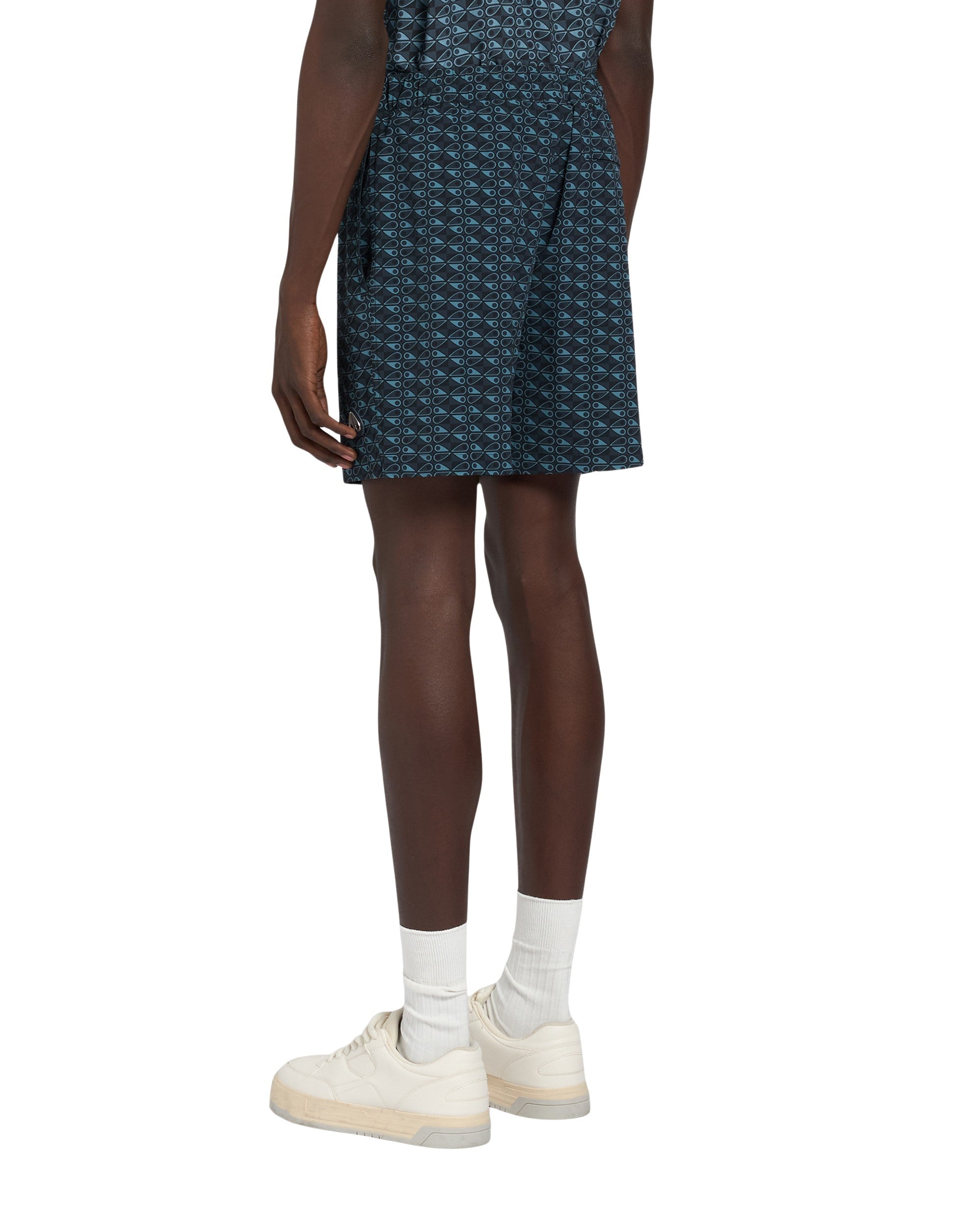 A regular-fit shirt featuring a full button fastening and a Cuban collar with short sleeves. The shirt is adorned with an all-over Moose Knuckles logo design and includes a chest pocket with a metal Moose Knuckles logo badge. A matching swim short is also available.