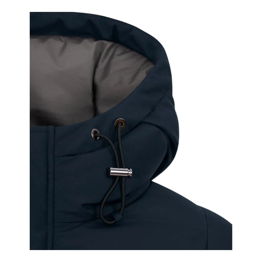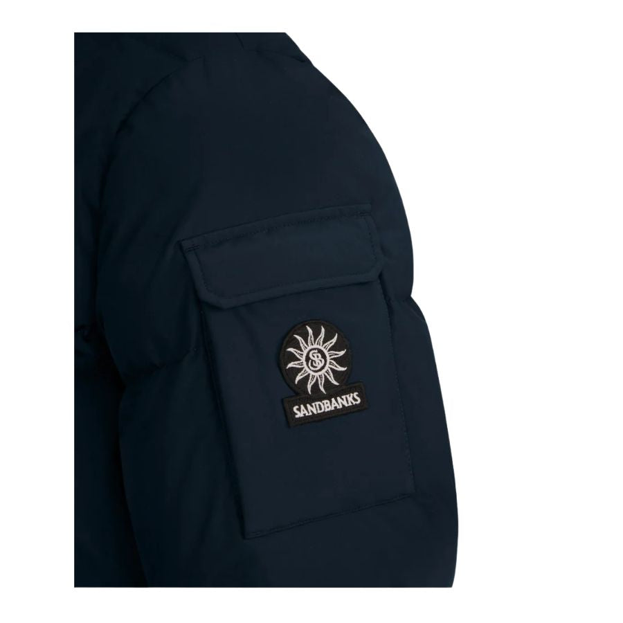 The Wide Baffle Puffer Jacket combines technical innovation with refined design. This mens Sandbanks jacket features a front two-way Lampo zip with tonal rubberised pullers and side zips for adjustable fit, this jacket adapts to your needs. The wide baffle construction and 100% recycled natural down with 650 Fill Power deliver exceptional warmth without compromise. An integrated, adjustable hood, elasticated arm cuffs, and fleece-lined side zip pockets enhance functionality, whilst the Sandbanks embroidered back panel and sleeve badge add distinctive character. Internal zip pocket and engraved tonal rubberised metal components complete this sophisticated piece.