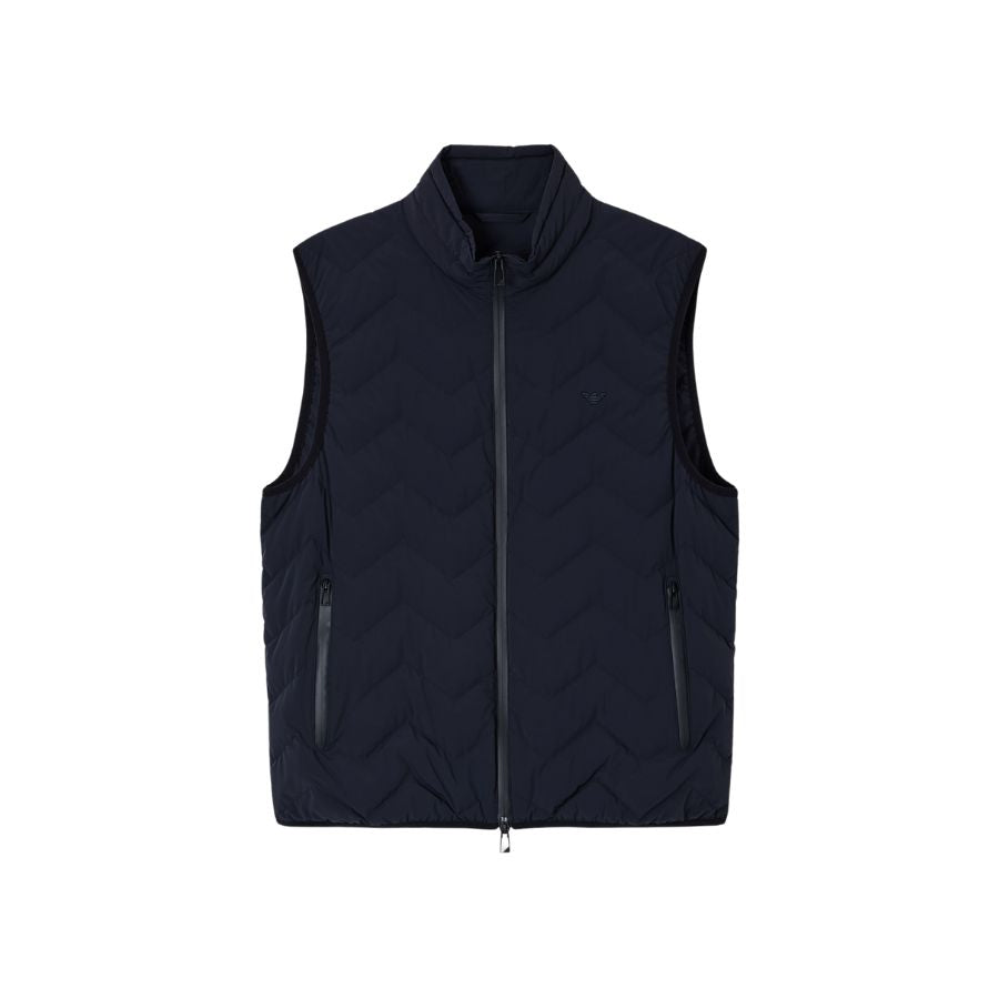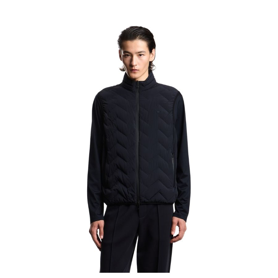 This sleeveless gilet combines refined functionality with contemporary design. Crafted from chevron quilted nylon spandex, it delivers exceptional lightness without compromising durability. The water-repellent finish provides reliable protection across varying weather conditions, whilst genuine down filling ensures a sculpted silhouette and superior warmth. The full-zip fastening allows effortless layering, making it an indispensable piece for transitional seasons and unpredictable climates. Perfect for those who demand both performance and elegance.