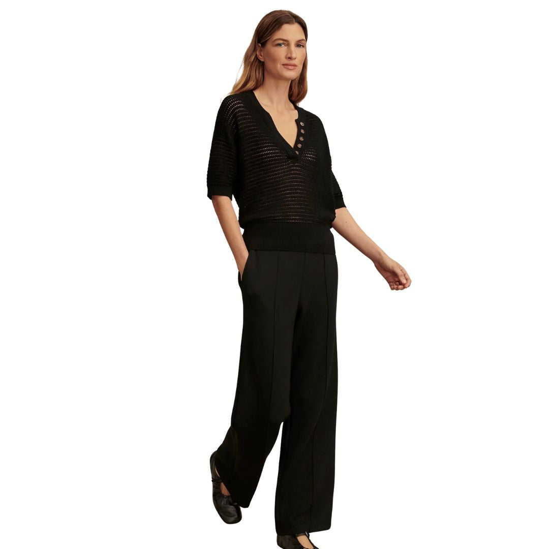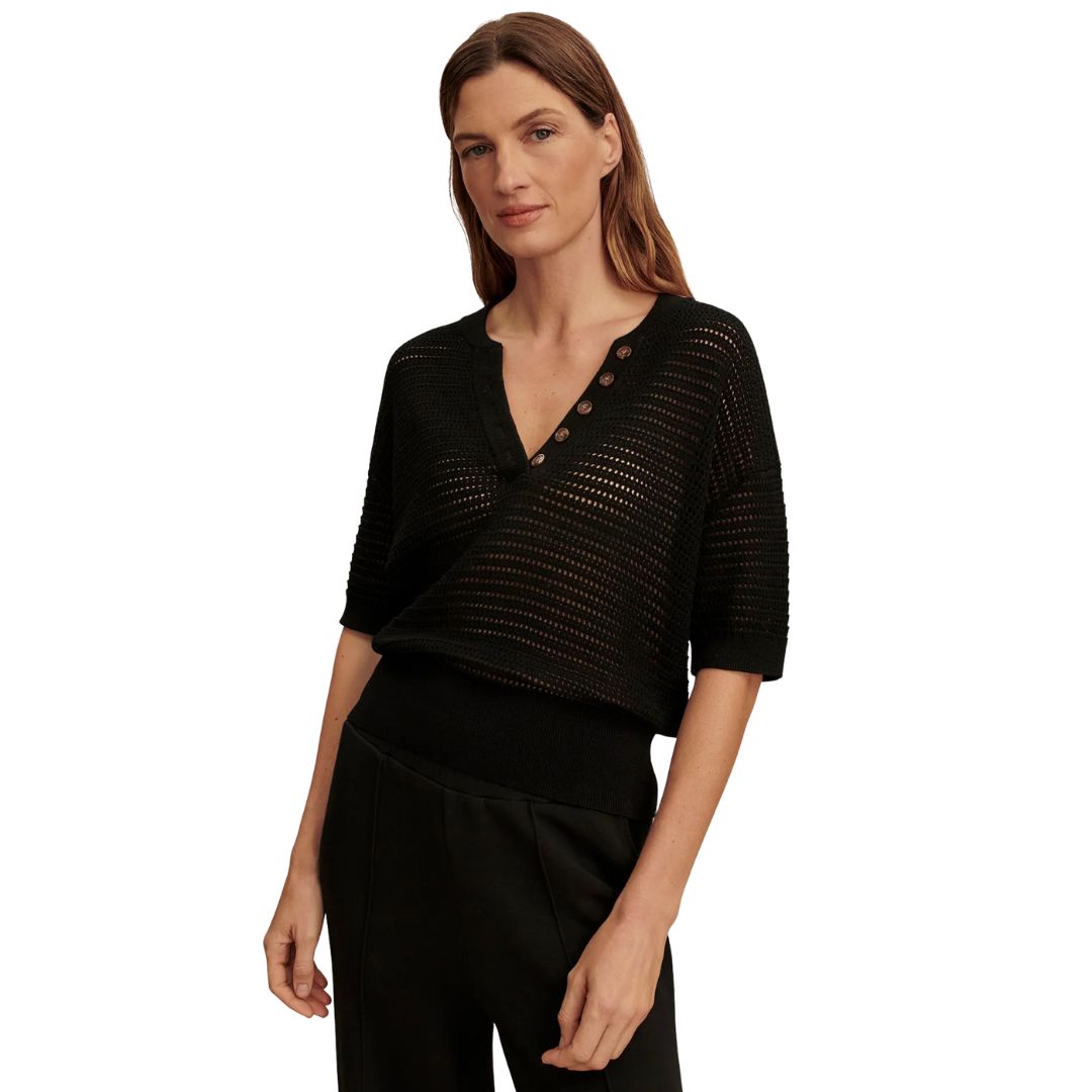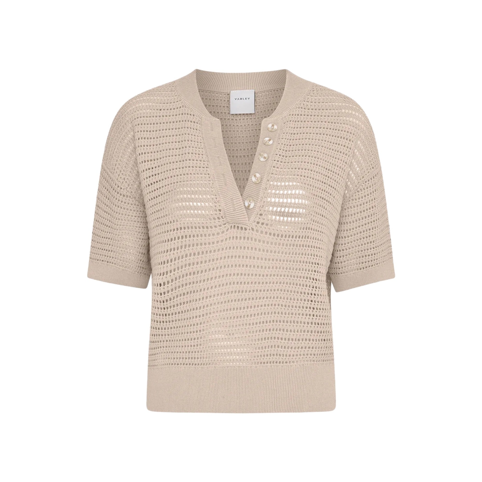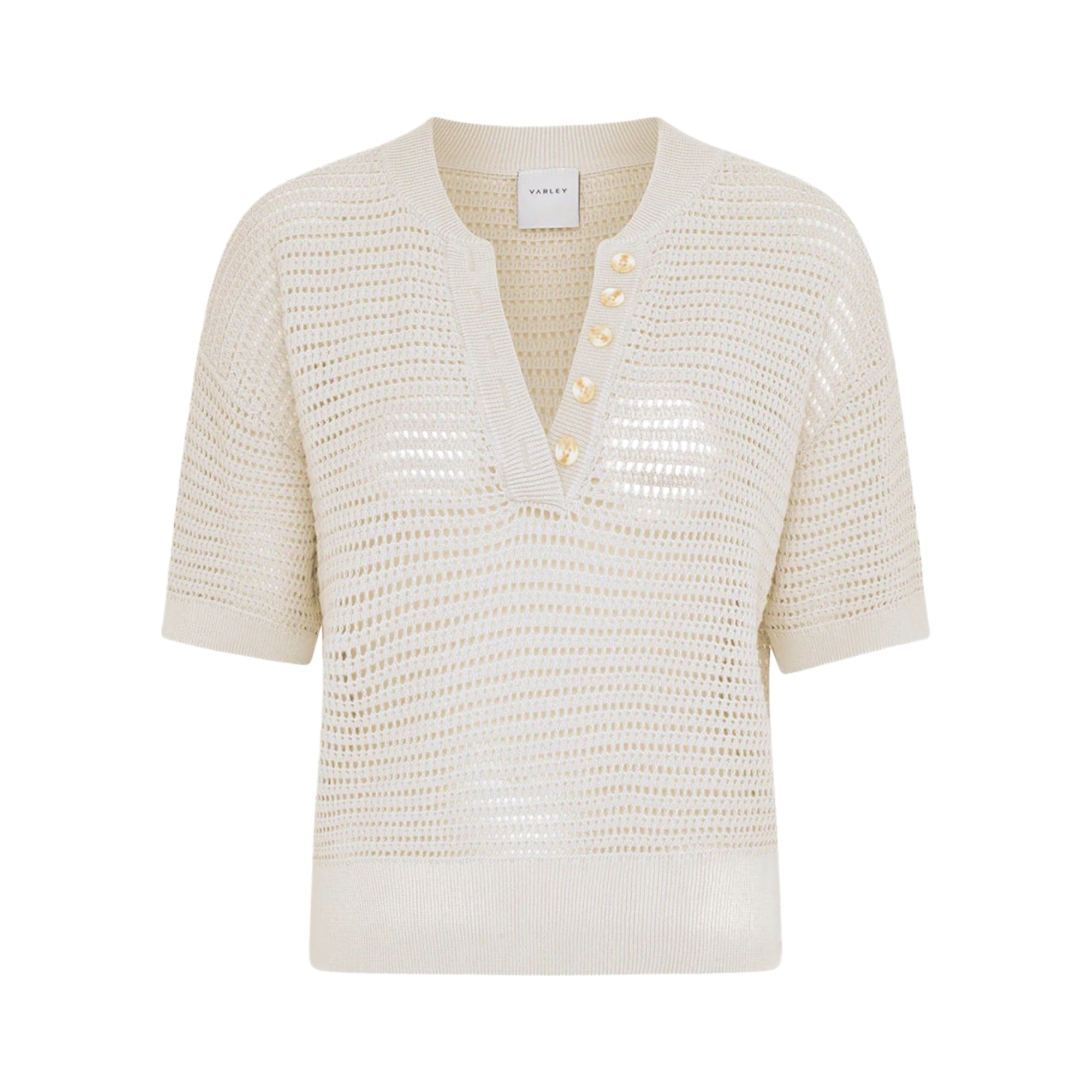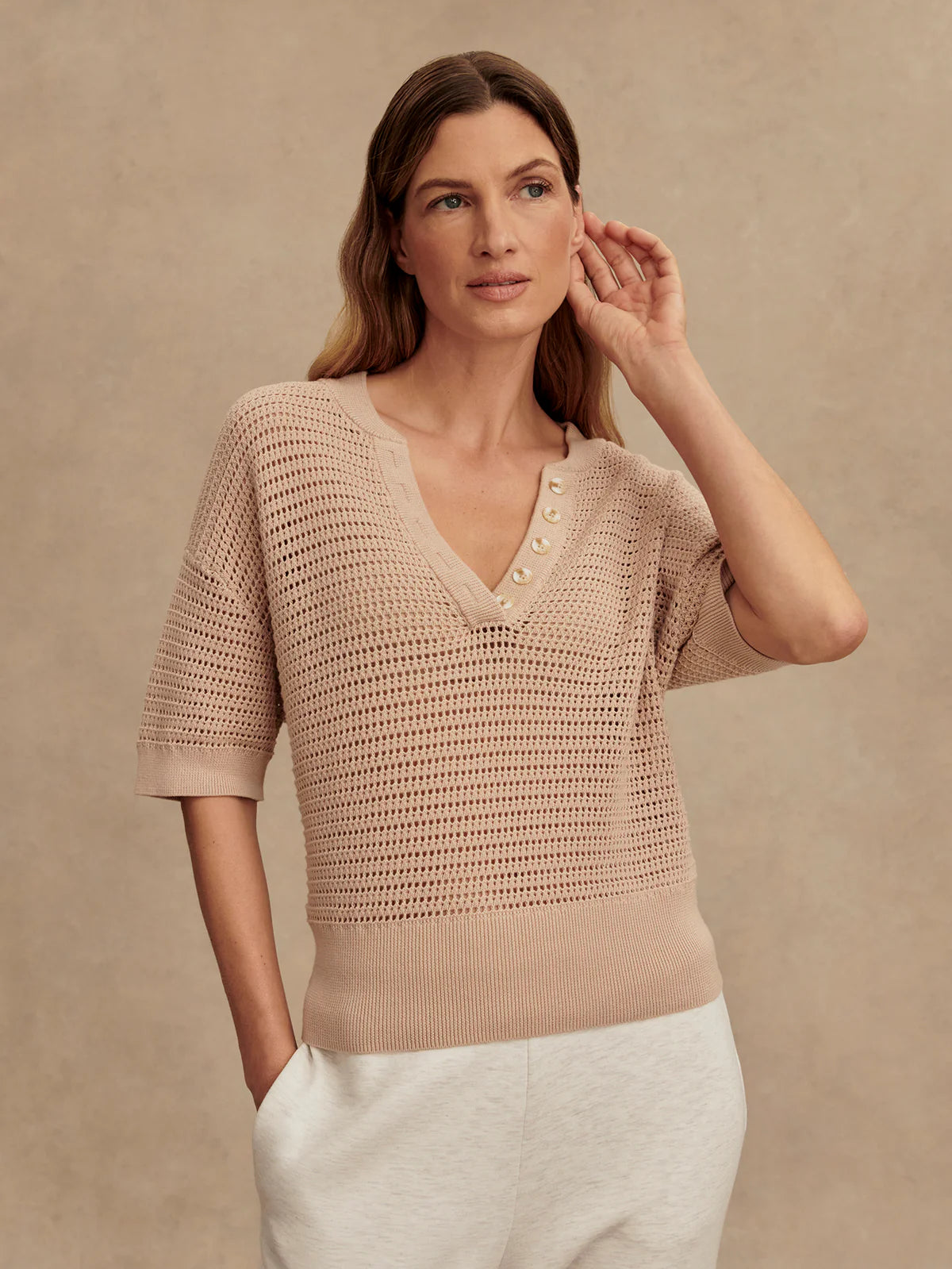 Crafted from lightweight cotton mesh knit, this top is designed in a boxy, oversized silhouette that drapes effortlessly from the frame. A deep V-neckline and short sleeves with dropped shoulders enhance its relaxed appeal, making it easy to pair with everything from active sets to everyday staples.