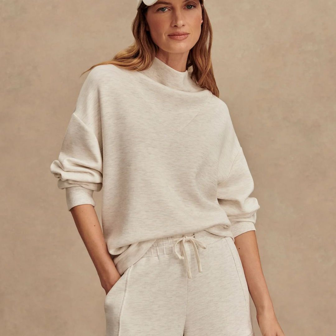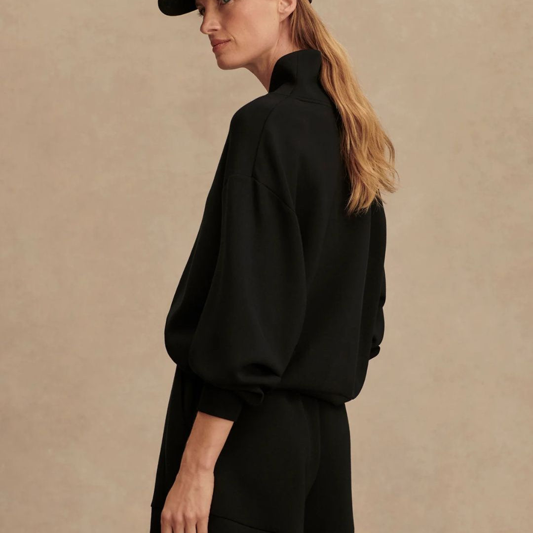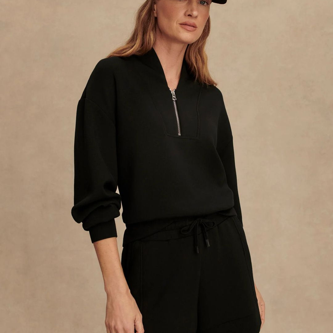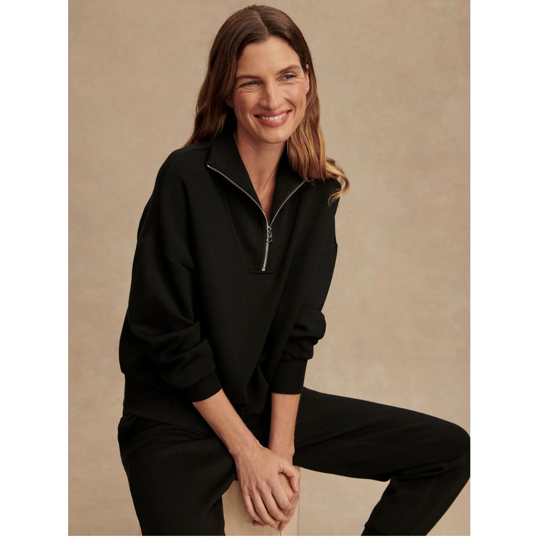 Experience effortless style and comfort with the Hawley Half Zip Sweat. Crafted from Varley's signature DoubleSoft® fabric, this oversized women's sweatshirt features a panelled half-zip neck and deep cuffs with a hem band, offering a refined yet relaxed fit ideal for lounging or on-the-go wear.