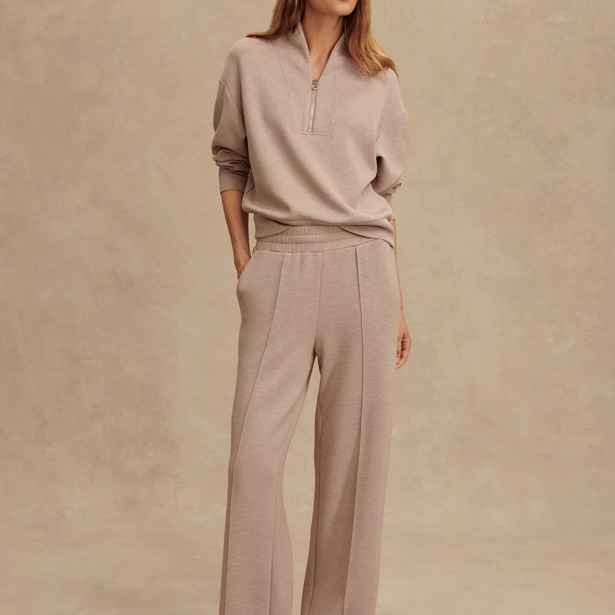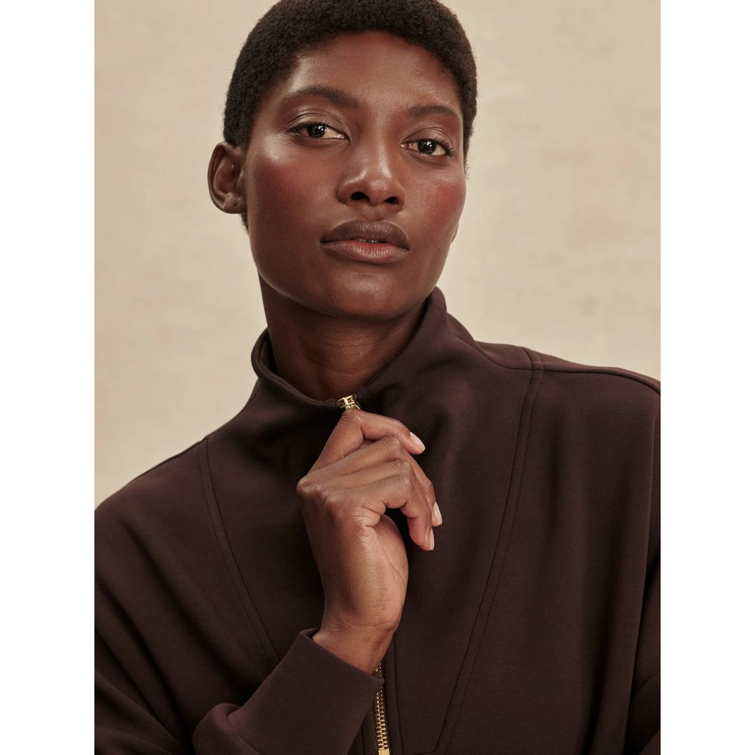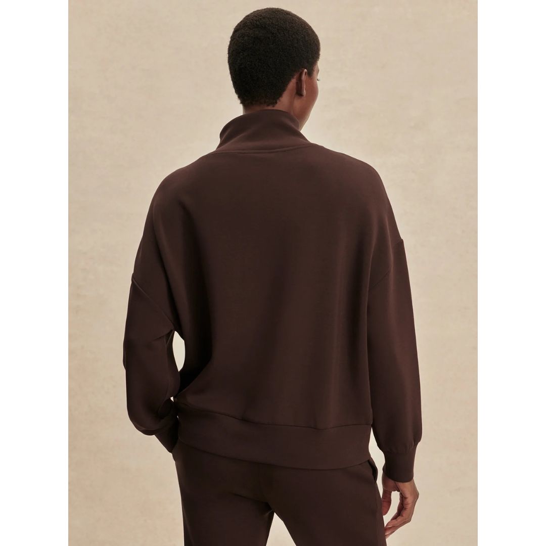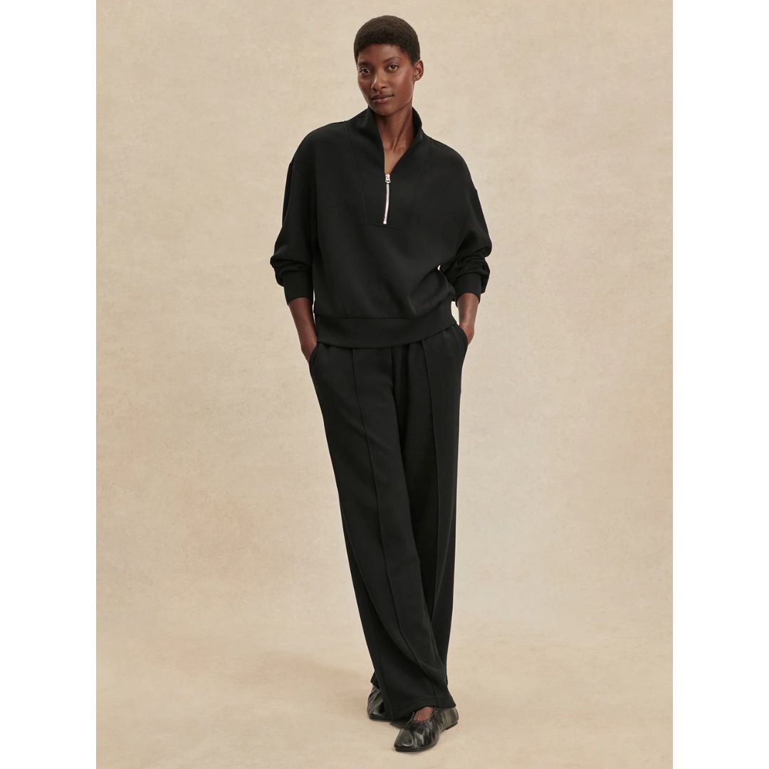 Experience effortless style and comfort with the Hawley Half Zip Sweat. Crafted from Varley's signature DoubleSoft® fabric, this oversized women's sweatshirt features a panelled half-zip neck and deep cuffs with a hem band, offering a refined yet relaxed fit ideal for lounging or on-the-go wear.