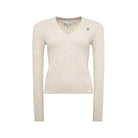 The Polly Knit offers a refined blend of comfort and style, featuring a relaxed fit with elegantly tailored slim set-in sleeves. Its V-neck cable knit pattern is subtly enhanced by a contrast embroidered HC logo at the chest, lending a distinctive, polished detail. Versatile and timeless, this knit is an essential addition to any wardrobe, ideal for layering or wearing solo to elevate your look with effortless sophistication.