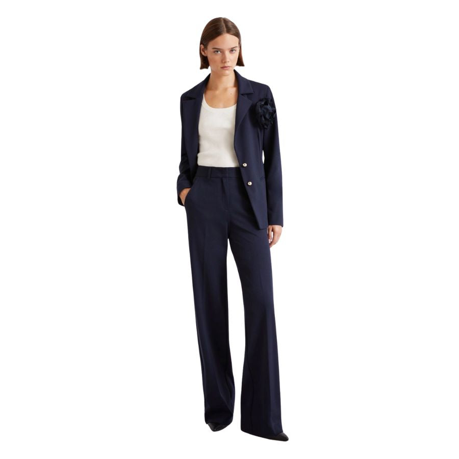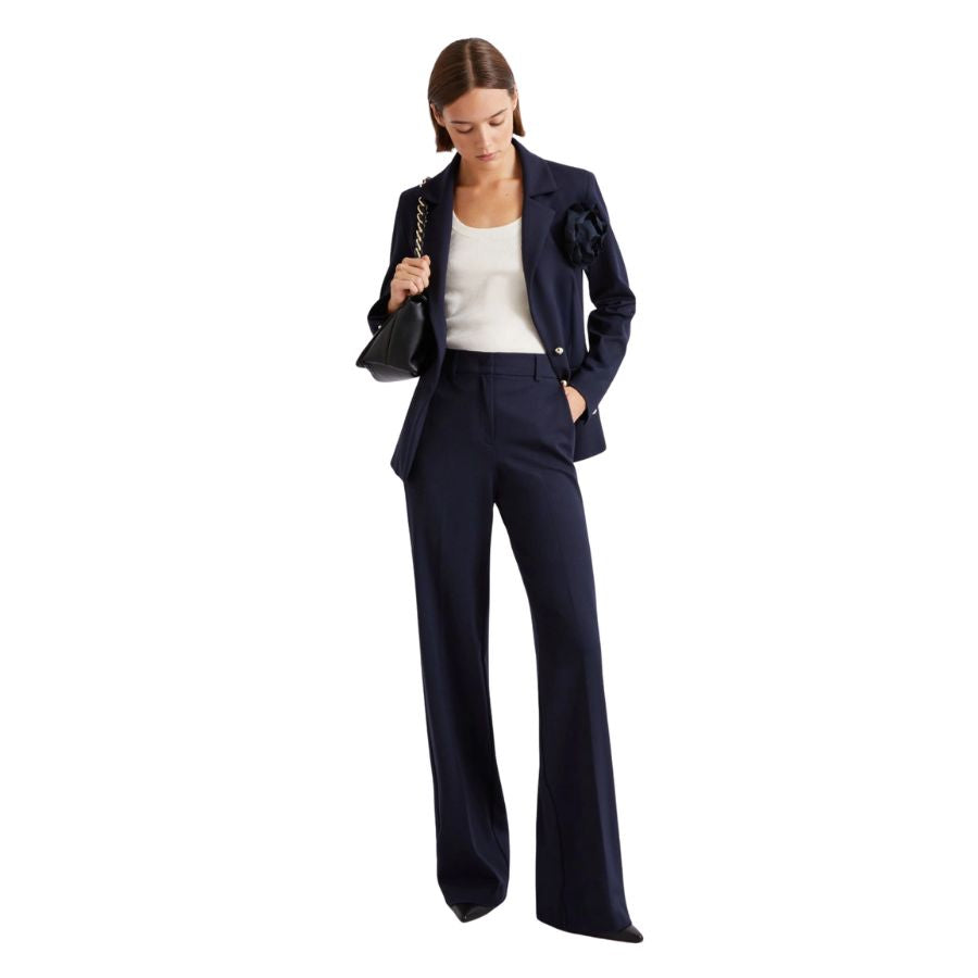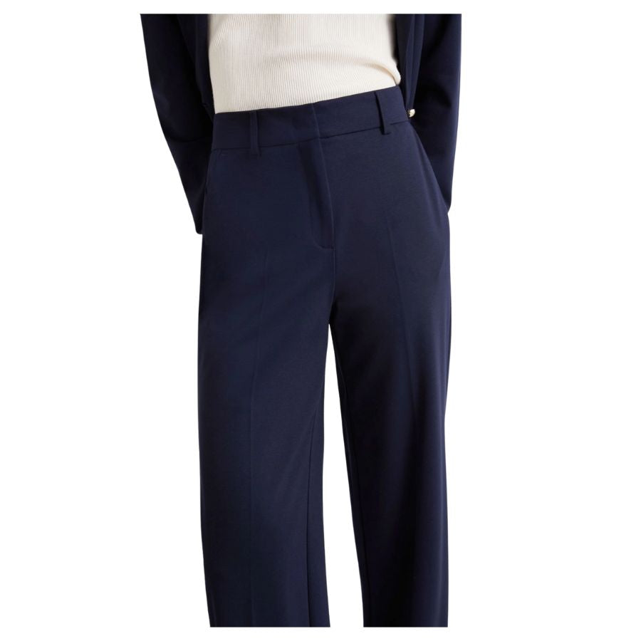 Elevate your everyday wardrobe with these impeccably tailored slim-fit jersey trousers, where comfort meets refined style. The sophisticated Milano-knit construction paired with a pressed pleat detail creates an elongated, streamlined silhouette that flatters effortlessly. Designed for the modern professional, these versatile trousers seamlessly transition from office to evening, offering the ease of jersey fabric without compromising on polish. A smart investment piece that brightens any day with understated elegance.