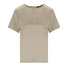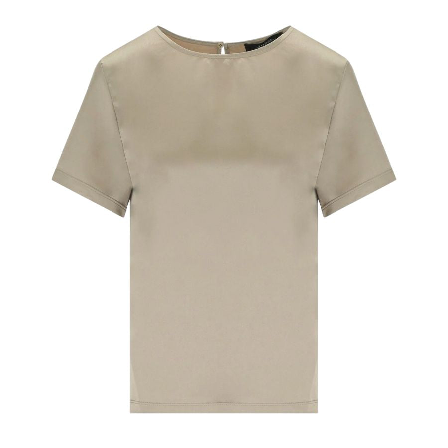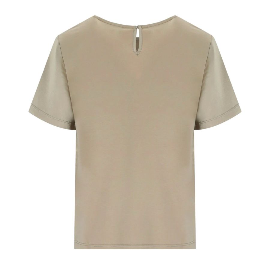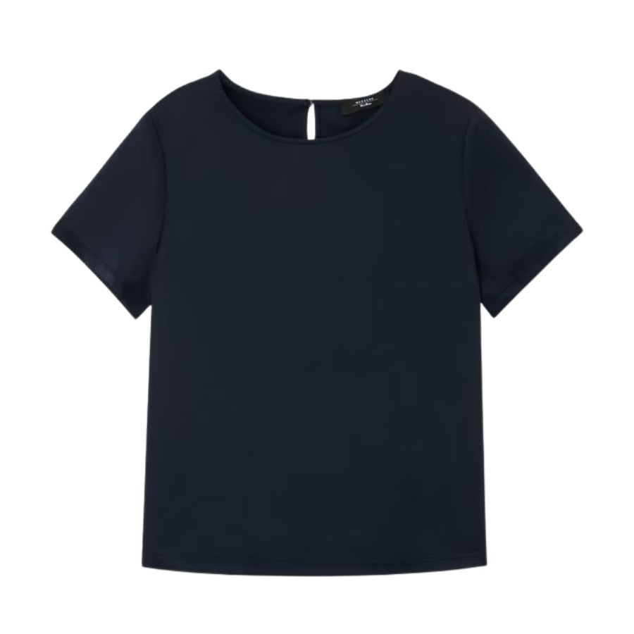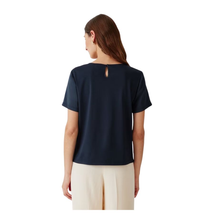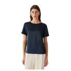 Effortlessly elegant, this satin and jersey top combines luxurious texture with everyday wearability. The refined crew neckline and short sleeves create a polished silhouette perfect for layering or wearing solo. Crafted from a blend of sumptuous satin and comfortable jersey, it transitions seamlessly from office to evening, offering understated sophistication for the modern wardrobe.