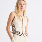 Aerovia Embroidered Linen Womens Waistcoat 2613151012200