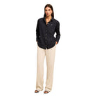 This women's Holland Cooper shirt is crafted from pure cotton, this relaxed-fit button-down showcases our signature attention to detail through beautifully engraved shell buttons adorning both cuffs and placket. The sophisticated yarn-dyed navy pinstripe pattern is complemented by our subtle ecru HC embroidery on the chest, while our distinguished gold branding tab sits proudly on the back yoke.