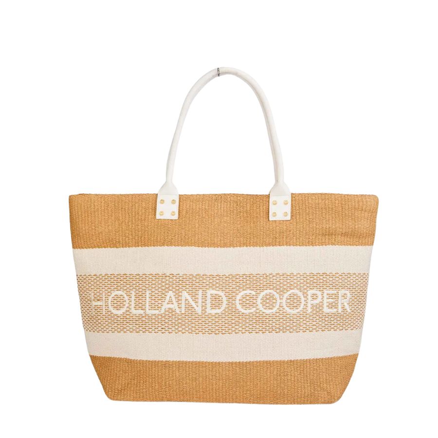 Uplift your summer aesthetic with our exquisitely crafted Holland Cooper Cannes Beach Bag. Hand-woven from natural rattan and intricately detailed with cream threading, this sophisticated shopper embodies effortless luxury. The premium leather strap, adorned with polished gold rivets, adds a touch of refined glamour, while our fully embroidered signature logo makes a bold statement. Perfect for beach days, weekend getaways, or everyday elegance.