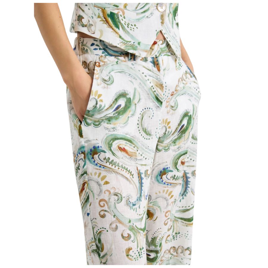 Improve your wardrobe with these women's Marella wide leg pure linen trousers with clean, tailored lines and a refined silhouette. Designed for versatility, they transition effortlessly from the office to formal occasions. The elasticated back waist provides comfort and ease of movement, while maintaining a polished front. Lightweight and breathable, these wide-leg trousers offer understated elegance for any occasion.