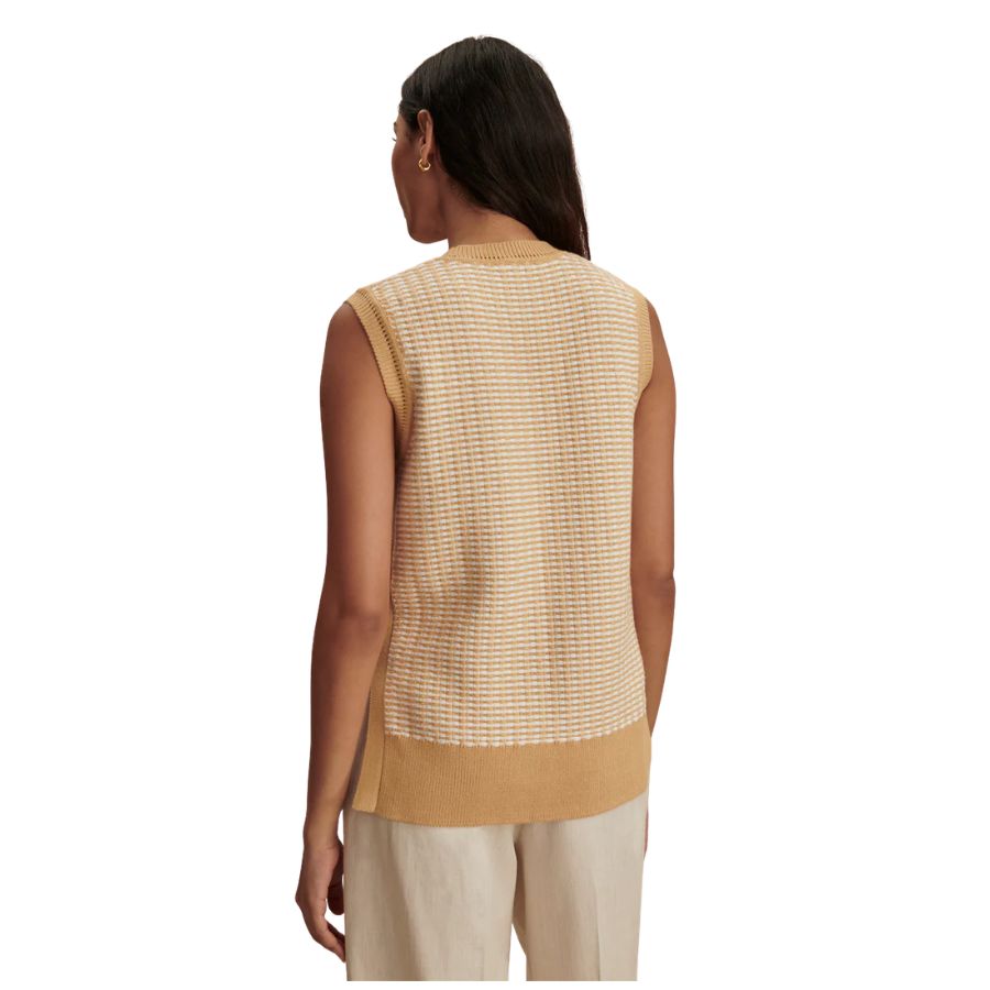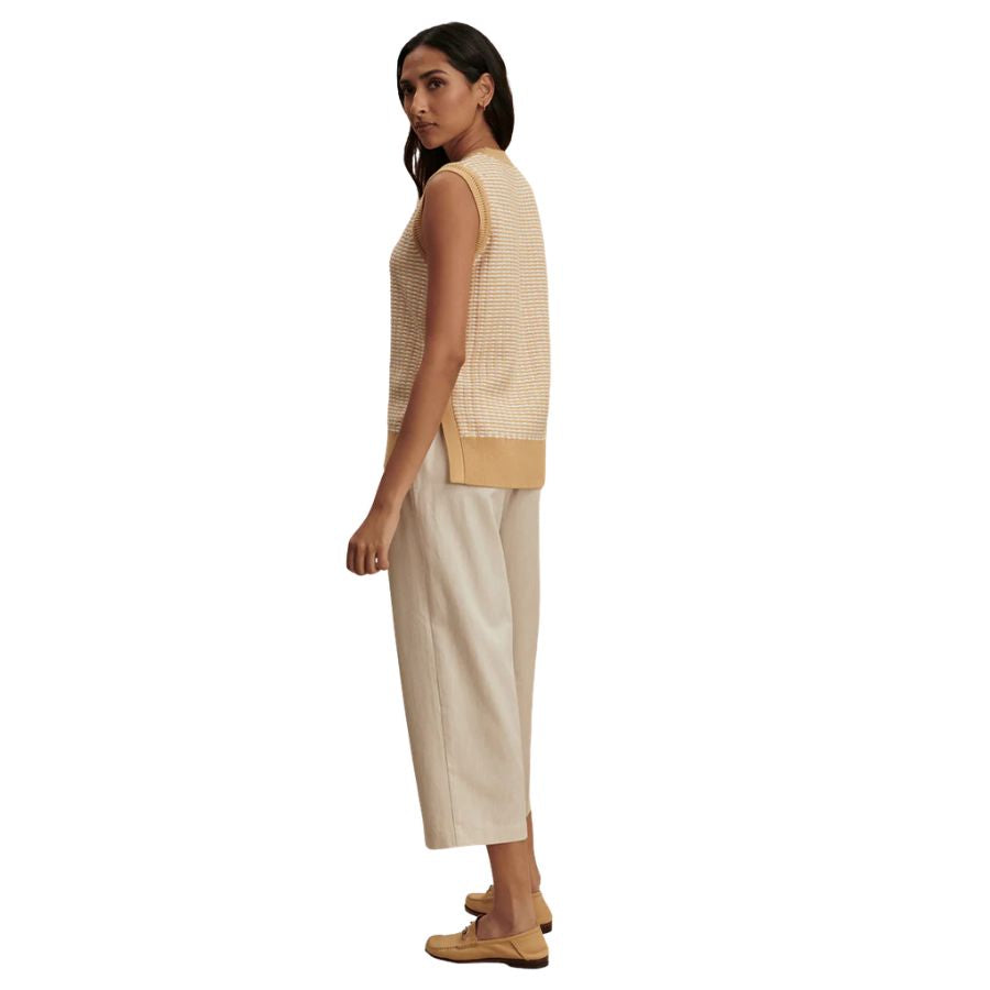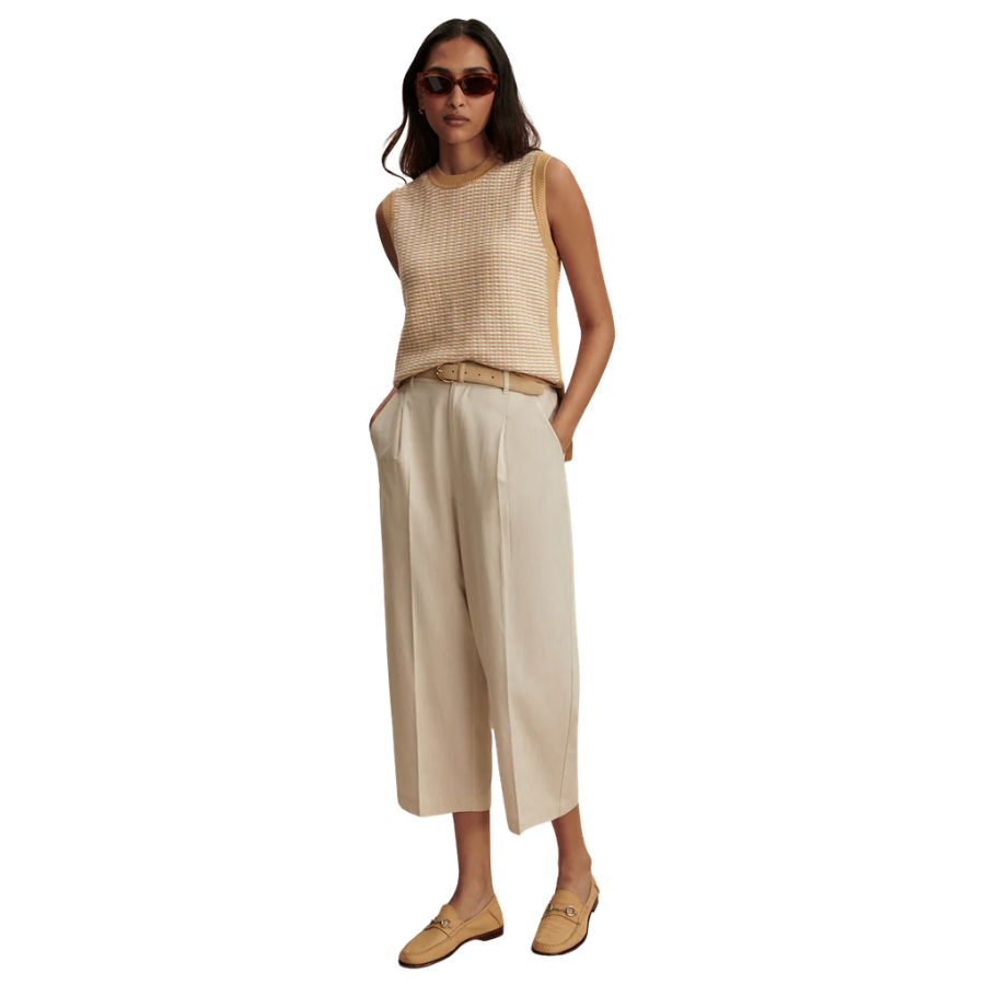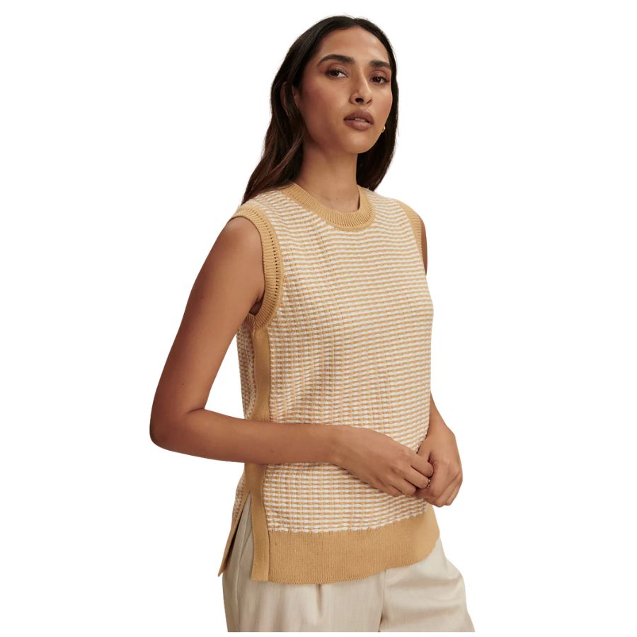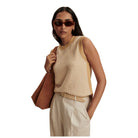This womens Varley sleeveless knit tank crafted from 100% cotton. Complete with side splits for ease of movement, Elis looks striking paired with tailored pants. Perfect for warmer weather, this piece features beautiful knitted detailing that adds texture and visual interest. The breathable cotton construction keeps you cool and comfortable throughout the day.