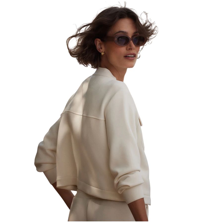 This womens Varley sweatshirt is crafted with a timeless 90s-inspired silhouette, this cropped Hartwell sweatshirt features discreet side pockets and an all-over rib texture for understated sophistication. The button-through design makes it effortlessly versatile, perfect for layering through every season. An elevated essential that transitions seamlessly from casual to refined.