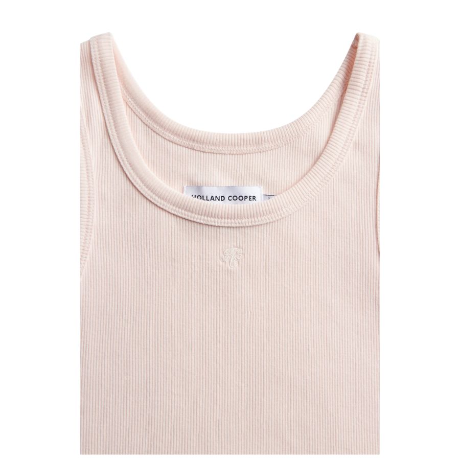 improve your essentials with our Rebecca Rib Tank in Palest Pink. This refined staple features our signature HC embroidery at the neckline, lending a subtle touch of luxury to its classic silhouette. Expertly tailored for a sleek, slim fit, the premium cotton-elastane blend ensures both comfort and sophistication.