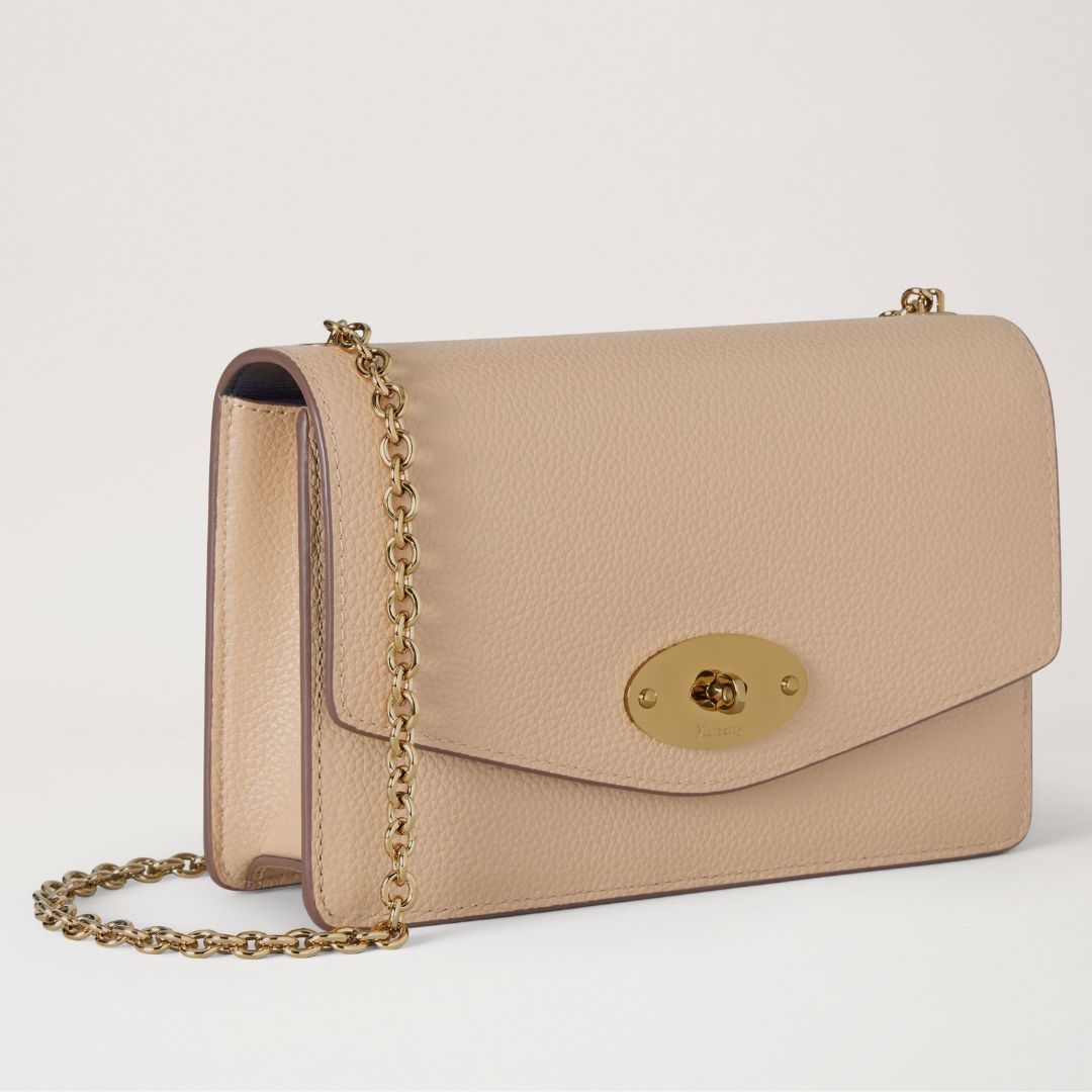 The Mulberry Small Darley in Classic Grain leather is a timeless handbag that combines elegance with practicality. Featuring the iconic postman's lock closure, this structured bag exudes understated luxury. Inside, one spacious main compartment keeps your essentials organised, while eight credit card slip pockets provide dedicated storage for cards and small items. Perfect for everyday use or special occasions, this classic design transcends trends and becomes a cherished wardrobe staple.