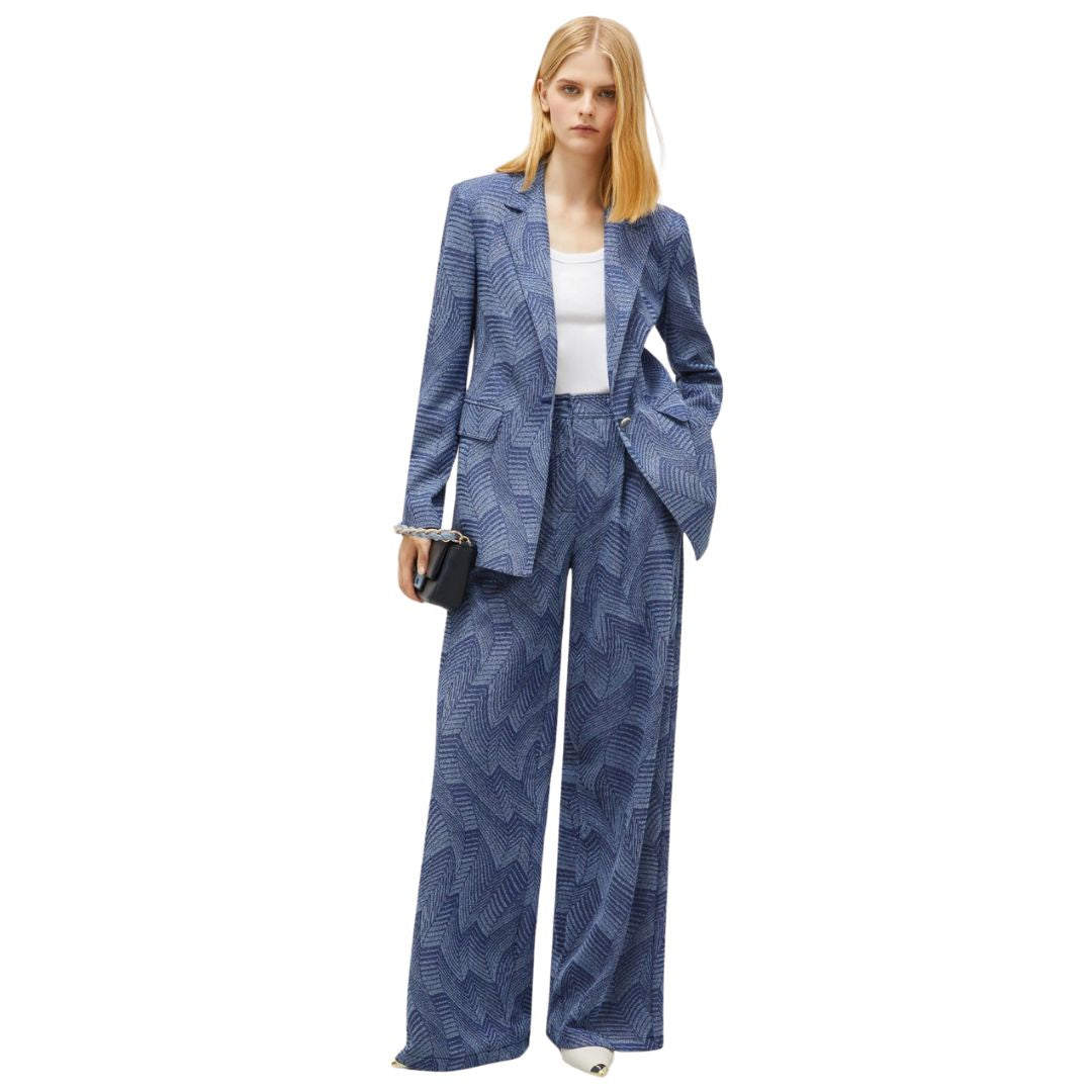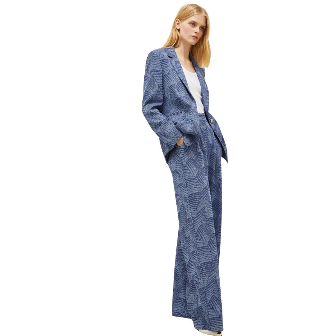 These flowing jacquard trousers are enhanced with shimmering lurex thread and a bold geometric optical pattern for a modern, metropolitan feel. Pair them with a top and the matching blazer for a complete, polished look.