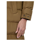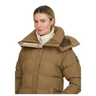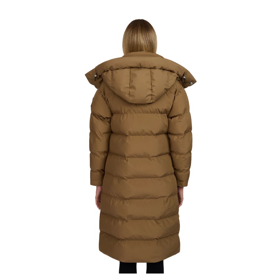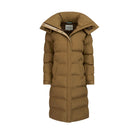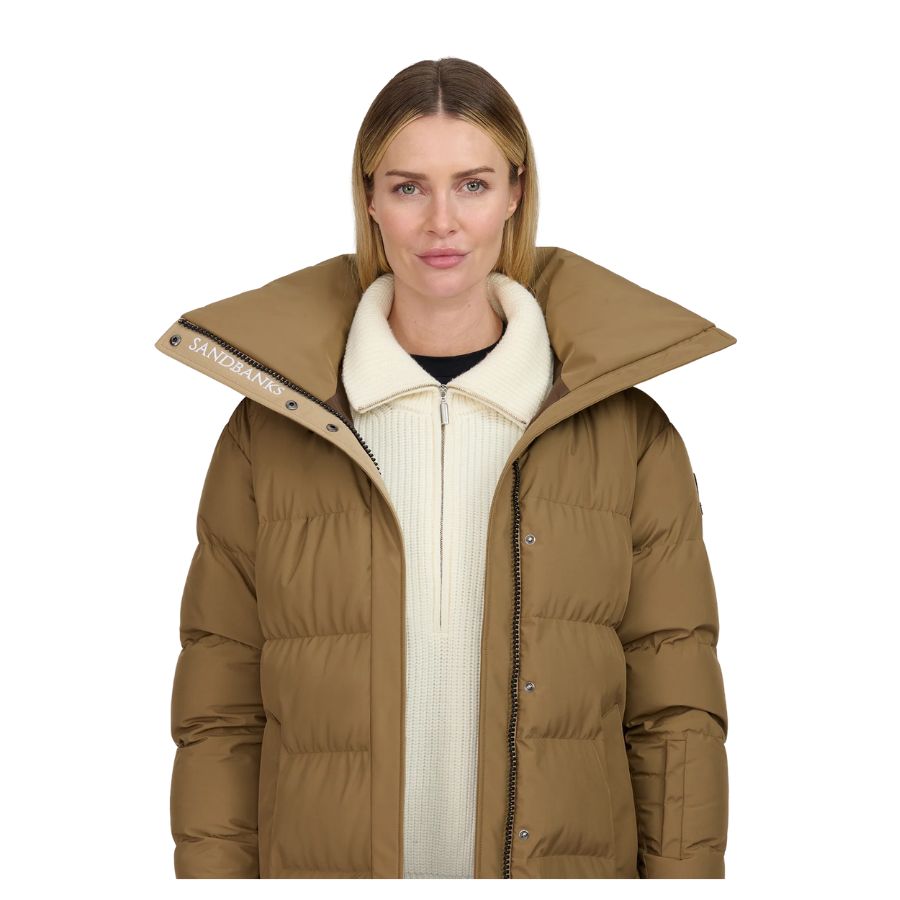 The Sandbanks Haven Oversized Long Puffer Jacket for women is crafted primarily from recycled plastic bottles, combining sustainability with style. Featuring a navy outer shell fabric with high thermal retention, this jacket showcases statement Sandbanks embroidery details.