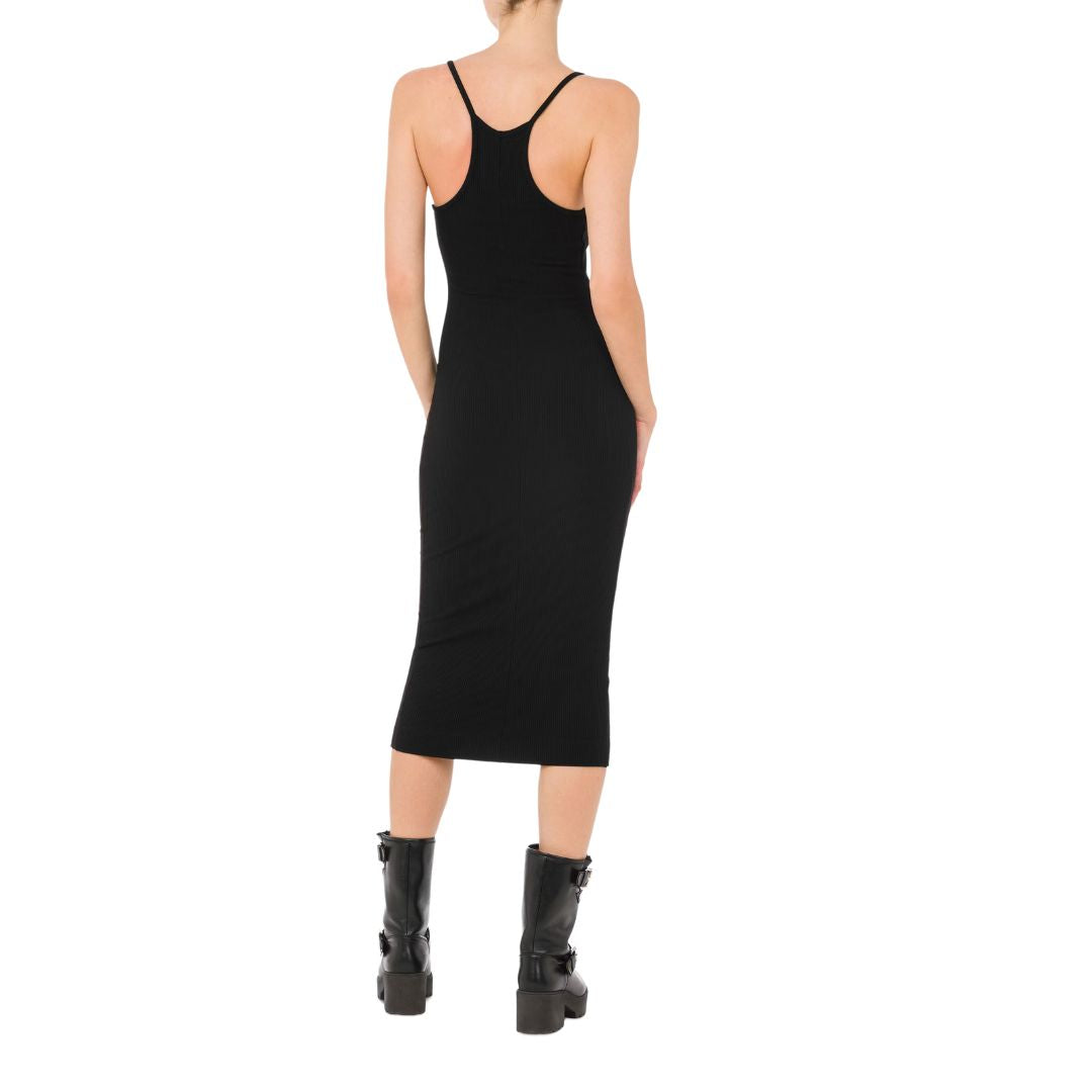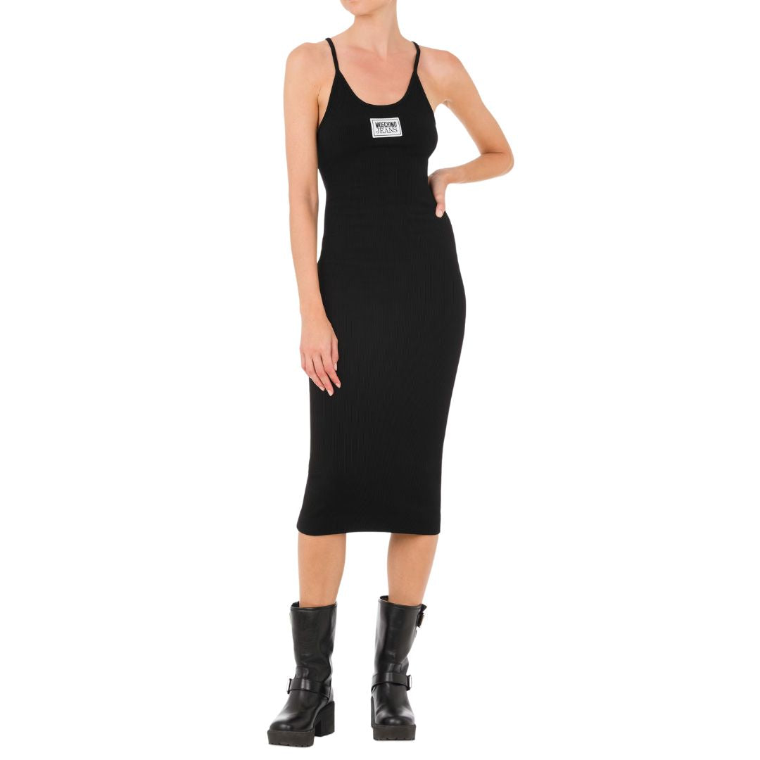 Denim Jacket styled with a cropped front and a longer back. This jacket is finished with the Moschino Jeans logo on the back of the jacket.