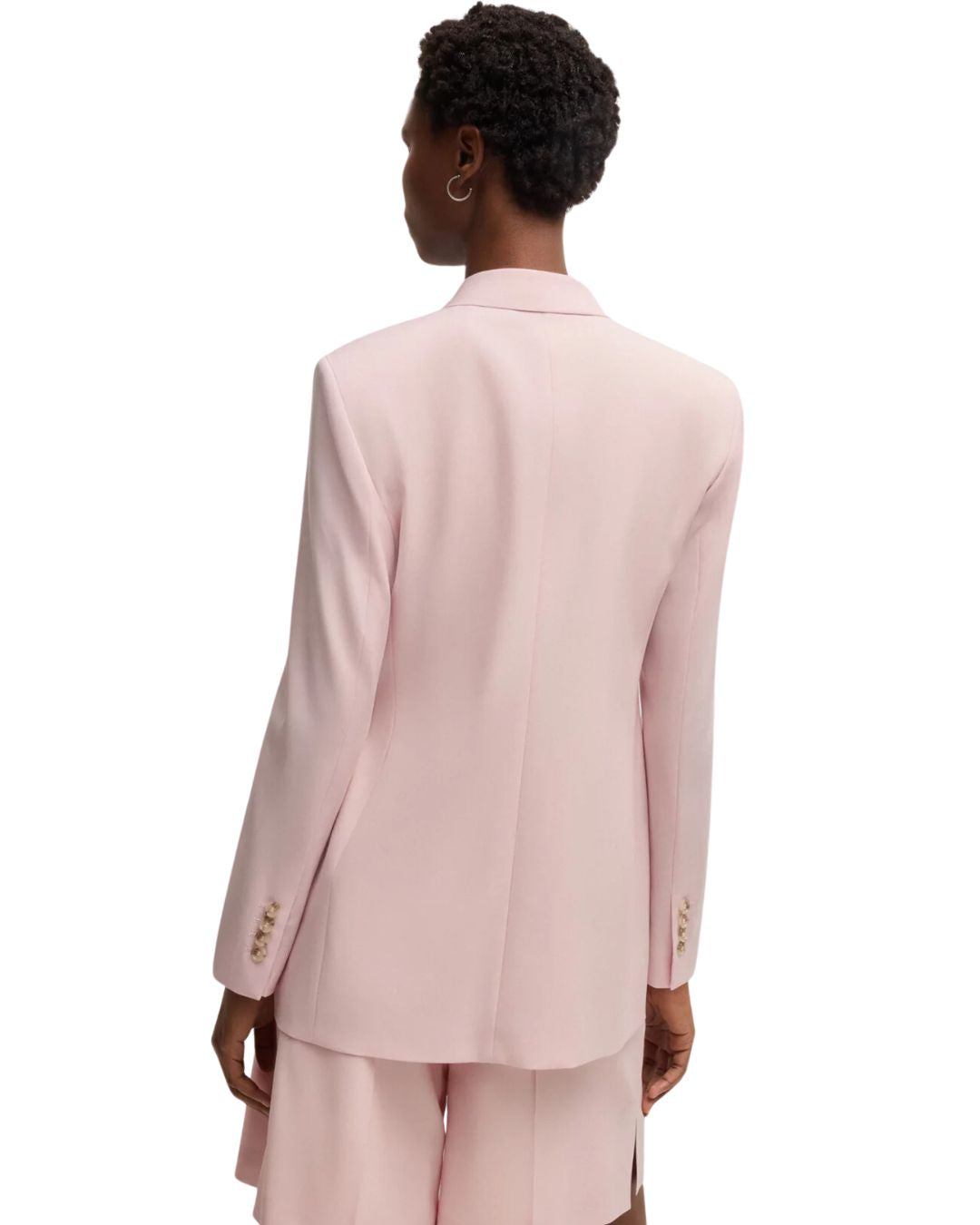 This BOSS Womenswear blazer features a durable weave for effortless styling and a modern double-breasted front. Designed with a straight fit and peak lapels, it is crafted from responsibly sourced wool.
