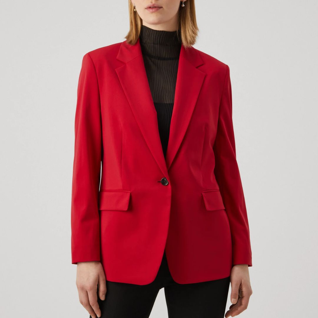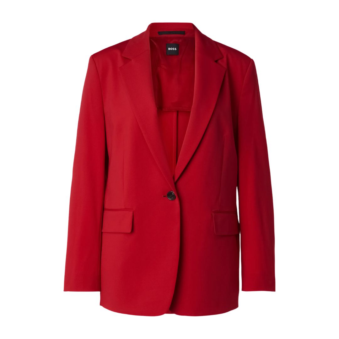 Elevate your seasonal wardrobe with the BOSS Womenswear longline blazer. Tailored for a relaxed fit, this partially lined, crease-resistant stretch jersey blazer is ideal for stylish layering over both workwear and casual weekend outfits.