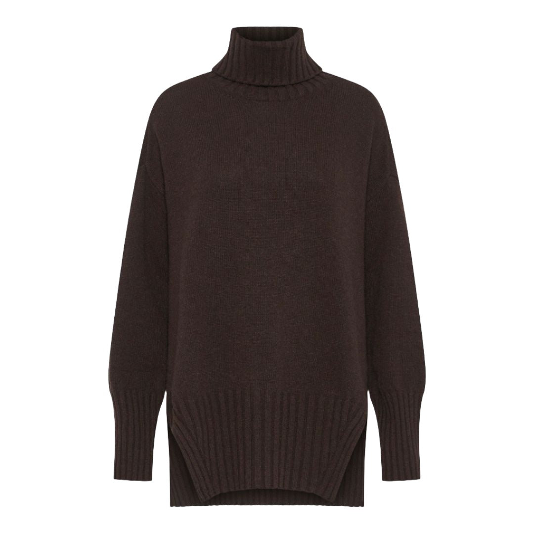 Embrace winter with a high-neck jumper that combines style and sustainability. Crafted from a soft wool-blend with recycled natural fibres, this oversized sweater offers a straight fit with asymmetric side slits and rib-knit trims. The cosy high neck and long, low-set sleeves make it ideal for layering in monochromatic outfits. Enjoy both comfort and eco-conscious fashion with this versatile piece.