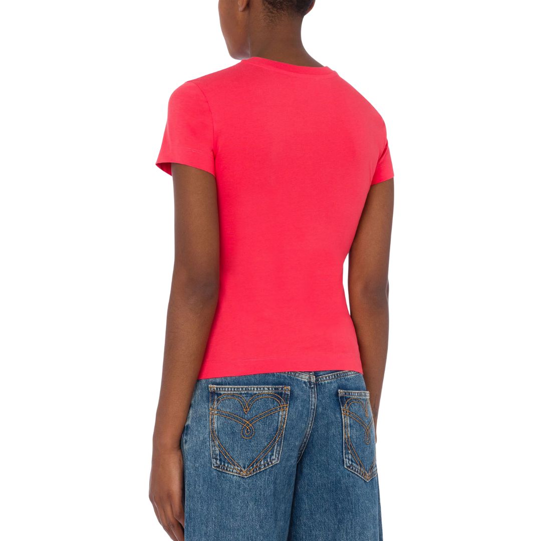 This cotton jersey T-shirt features a bold contrasting logo print, adding a modern, eye-catching touch to a classic wardrobe essential. Made from soft, breathable fabric, it offers all-day comfort and a relaxed fit. The striking logo adds a contemporary edge, making it a versatile piece that pairs easily with jeans, shorts, or skirts for both casual and elevated looks. Perfect for adding a touch of effortless style to your everyday wardrobe.