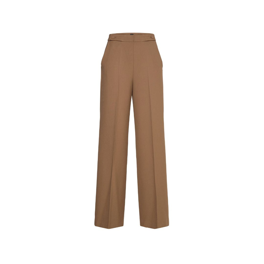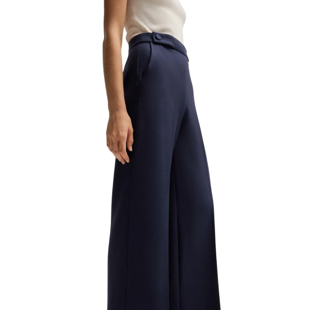 These trousers by BOSS Womenswear offer a modern silhouette with a wide leg design, crafted from comfortable stretch fabric. The waistband is detailed with covered buttons. Made from cellulose fibers sourced from responsibly managed forests, this product supports sustainable practices and the protection of virgin and endangered forests through our collaboration with external organizations.