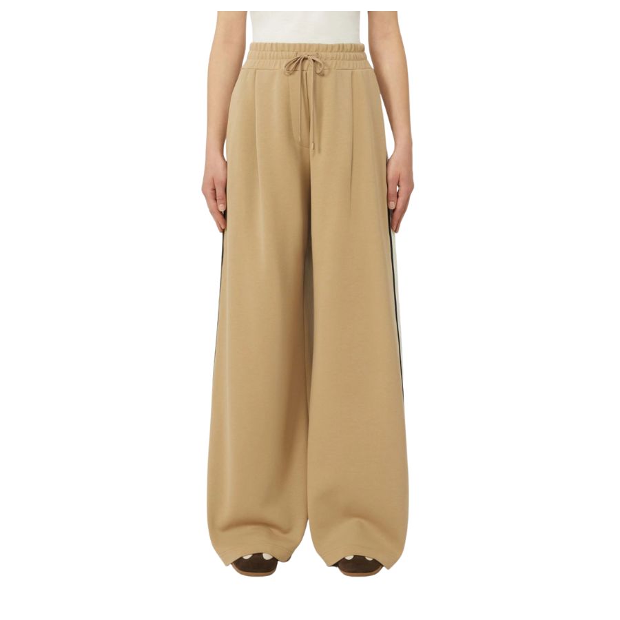 Elevate your wardrobe with these refined cotton jersey wide-leg trousers, crafted with an oversized silhouette for contemporary comfort. The drawstring-adjustable elasticated waist allows for a customised fit, whilst front waist pleats add subtle structure and movement. Practical side pockets complete the design, making these trousers an understated yet polished choice for modern dressing.