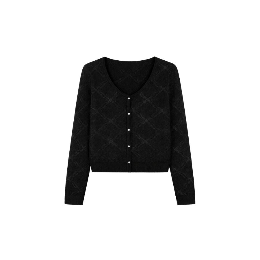 Elevate your wardrobe with this exquisite ultra-light lace knit cardigan, designed for the discerning modern woman. Its slim-fit silhouette drapes elegantly whilst the delicate lace fabrication adds an understated sensuality to any ensemble. Perfect for layering over coordinating pieces, this refined piece effortlessly transitions from day to evening. Embrace contemporary styling by pairing complementary tones for a polished, urban aesthetic that speaks to timeless sophistication.