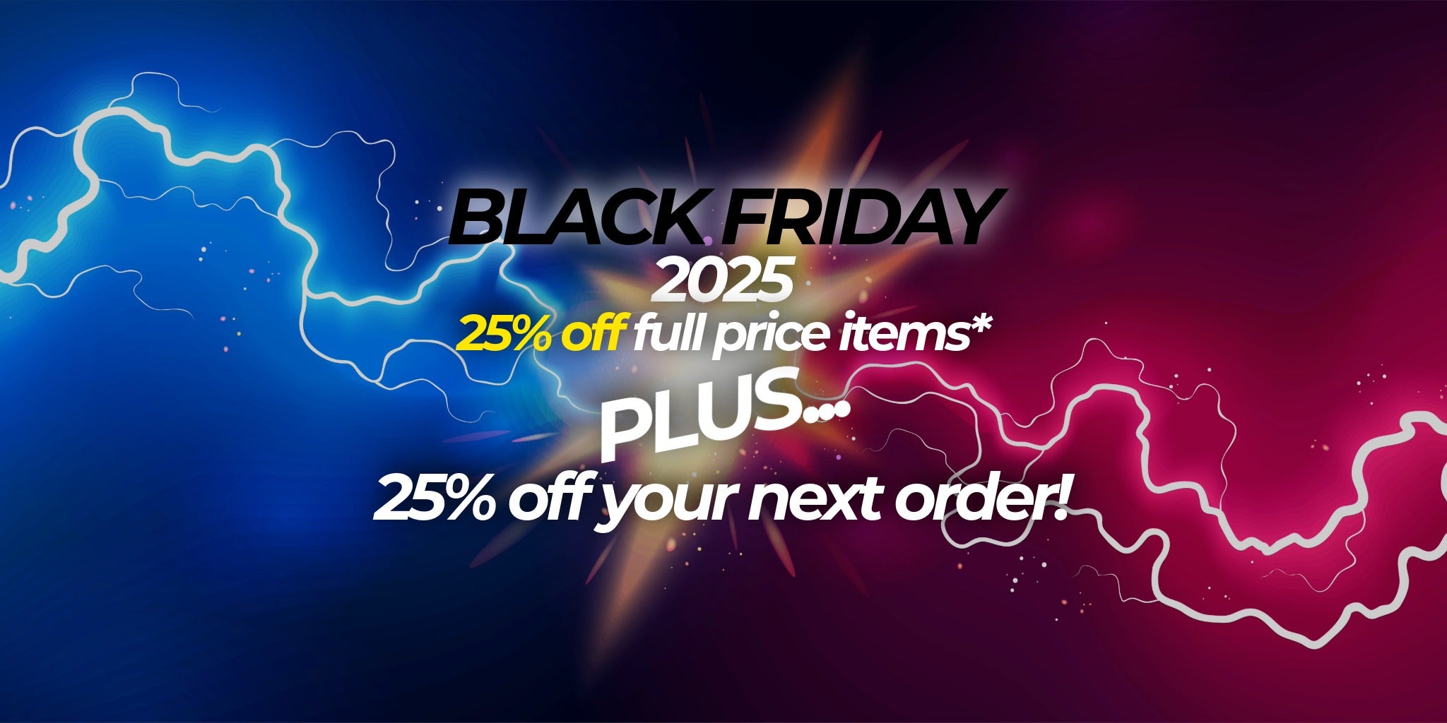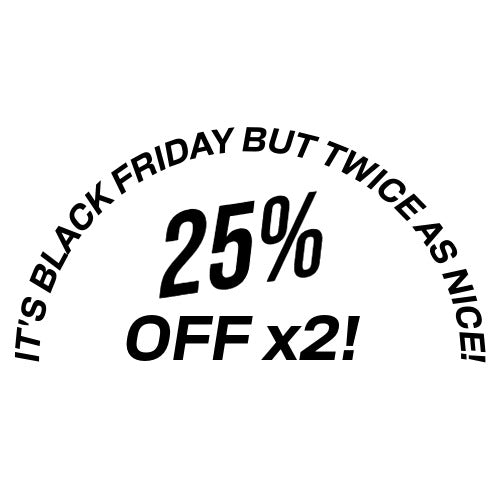 Customers who make a qualifying purchase during Black Friday Week (any online order containing a product with 25% off) will receive an exclusive code for an additional 25% off any full-price item inside their order, valid from 2nd December until 24th December 2025.