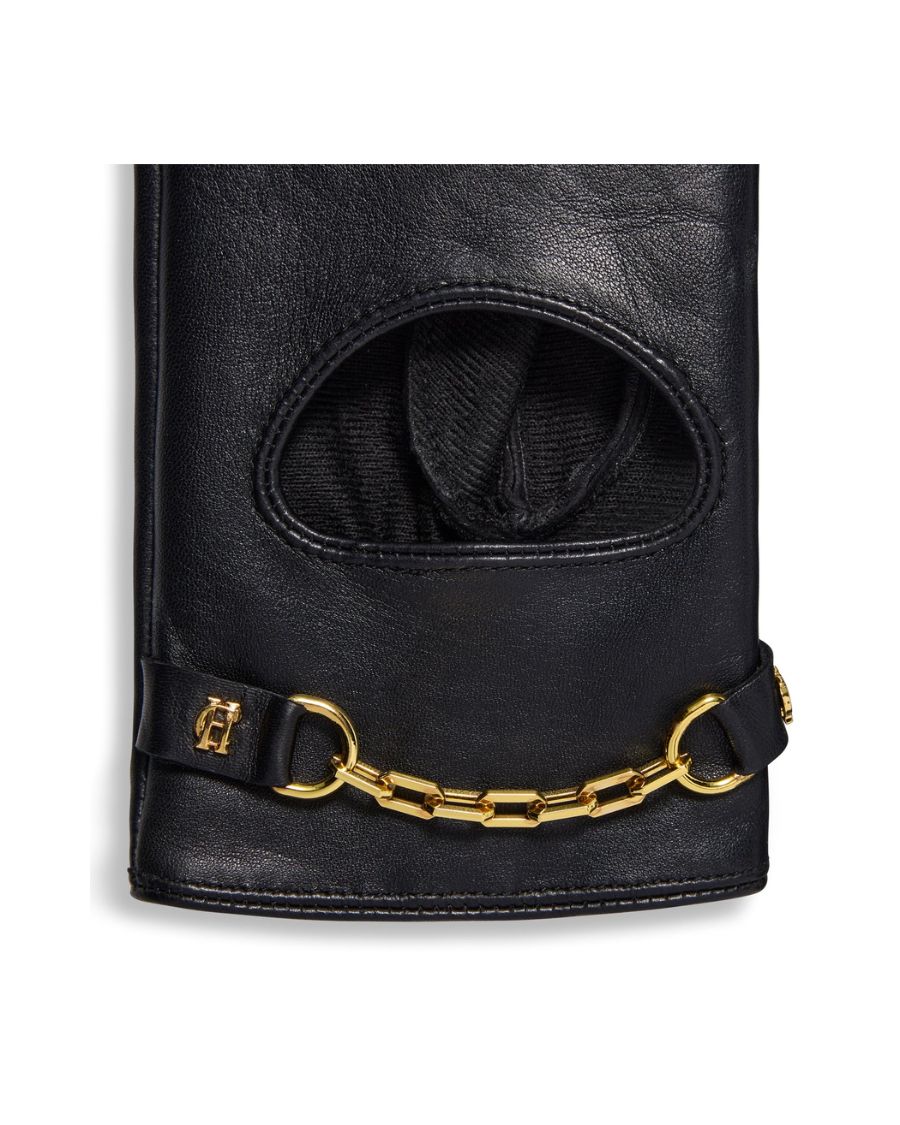 Crafted from sumptuous sheep leather, these Holland Cooper leather driving gloves epitomise refined elegance. Perforated finger detailing ensures optimal breathability during wear, whilst the elasticated wrist opening delivers a secure, tailored fit. Adorned with a delicate gold chain and HC logo trim, they transform an everyday essential into a statement of understated luxury. The perfect marriage of timeless design and contemporary comfort.