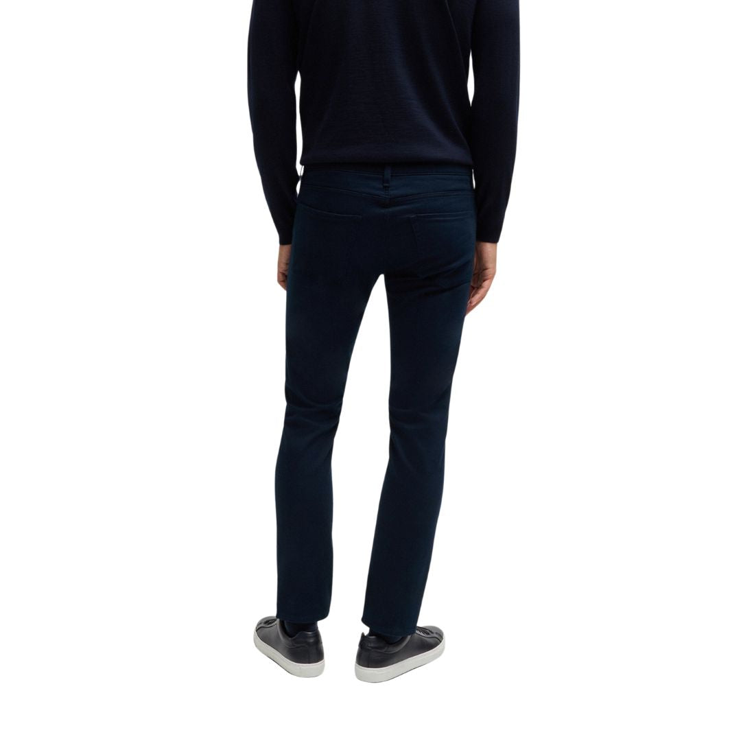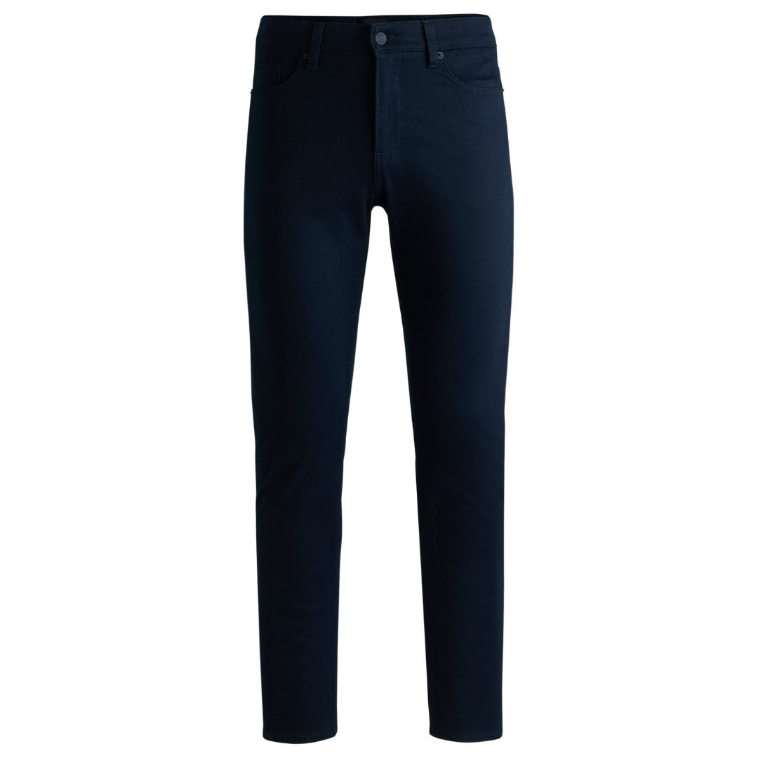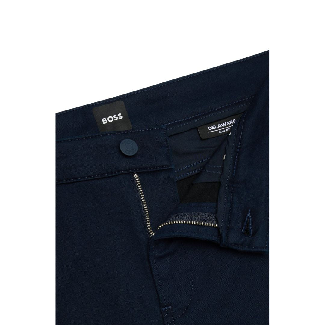 These casual trousers by BOSS are cut to a slim fit, offering a modern silhouette. Crafted from a blend of cotton and stretch, they feature a satin fabric with a softly brushed finish for added comfort. The trousers have a regular rise and are secured with a button and zip closure. With a slim leg design, they include side pockets at the front and a patch pocket at the back for practical storage.