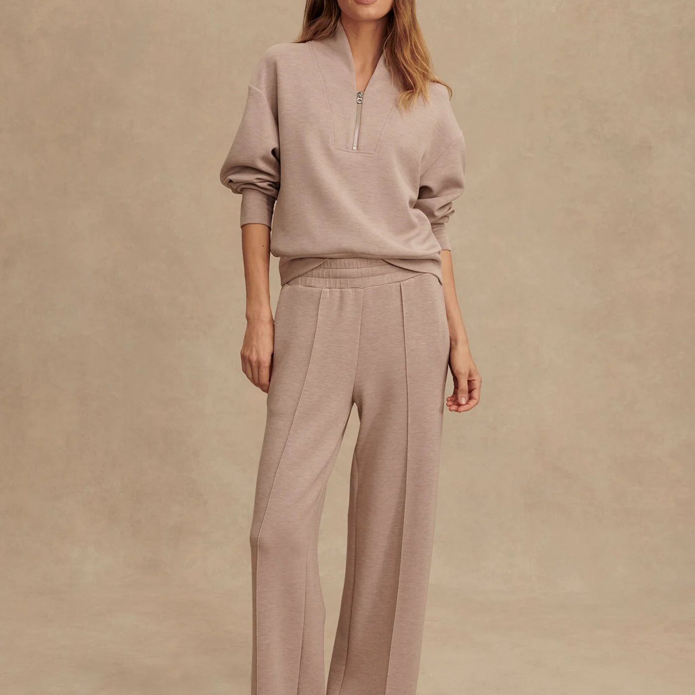 Experience exceptional comfort and refined style with the Wide Leg Pant 30". Crafted from DoubleSoft® fabric, these Women's high-rise pants feature a flattering wide-leg silhouette, an elasticated waist with an internal drawcord for a perfect fit, and delicate pink tuck detailing. Perfectly blending elegance and versatility, they are an essential addition to any sophisticated wardrobe.
